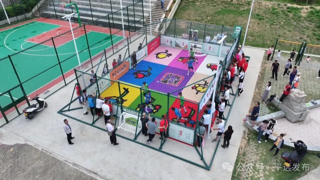 本次赛事采用“笼式三人制足球”模式,依托标准化彩色微足球场展开。比赛现场分为A、B两个赛区,同步进行三轮循环赛。可以看到,笼式球场占地96平方米,采用全封闭挡板及围网设计,配备高弹力人造草皮,紧凑的空间设计强化小范围传控技巧,规则限定“禁区内禁止射门”“点球采用脚后跟罚球”等,既降低参与门槛,又凸显团队协作的核心价值。以九宫格为创意的人造草皮上,八个形态各异的彩书“乐”字环绕其间,呈现“独乐乐不如众乐乐”的内涵,与围网挡板上的彩书诗词、典故,构建起“德育、美育、体育”三育并举的沉浸式足球空间。经过激烈角逐,最终平远大柘队拔得头筹,兴宁黄陂队紧随其后,平远大柘队罗勇浩、兴宁黄陂队刘梓铭分别获得最佳射手奖和最佳球员奖。