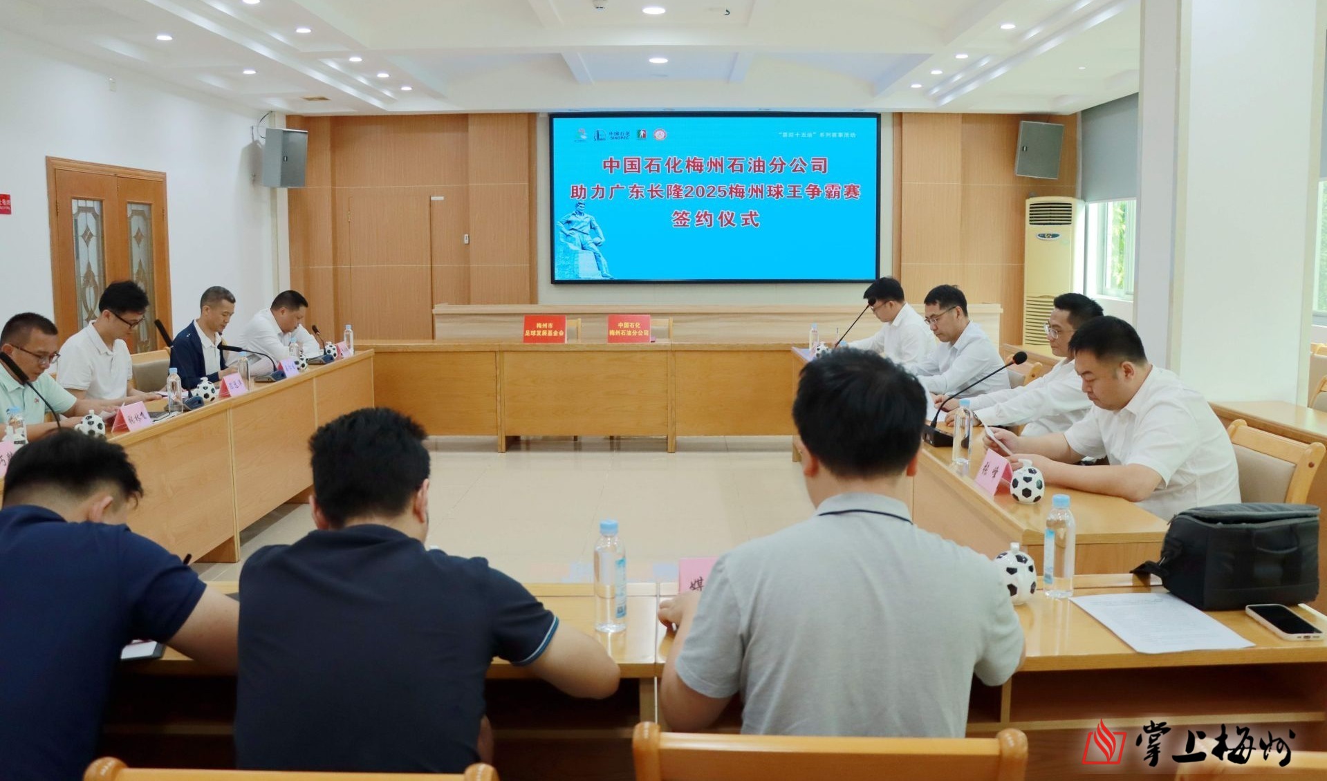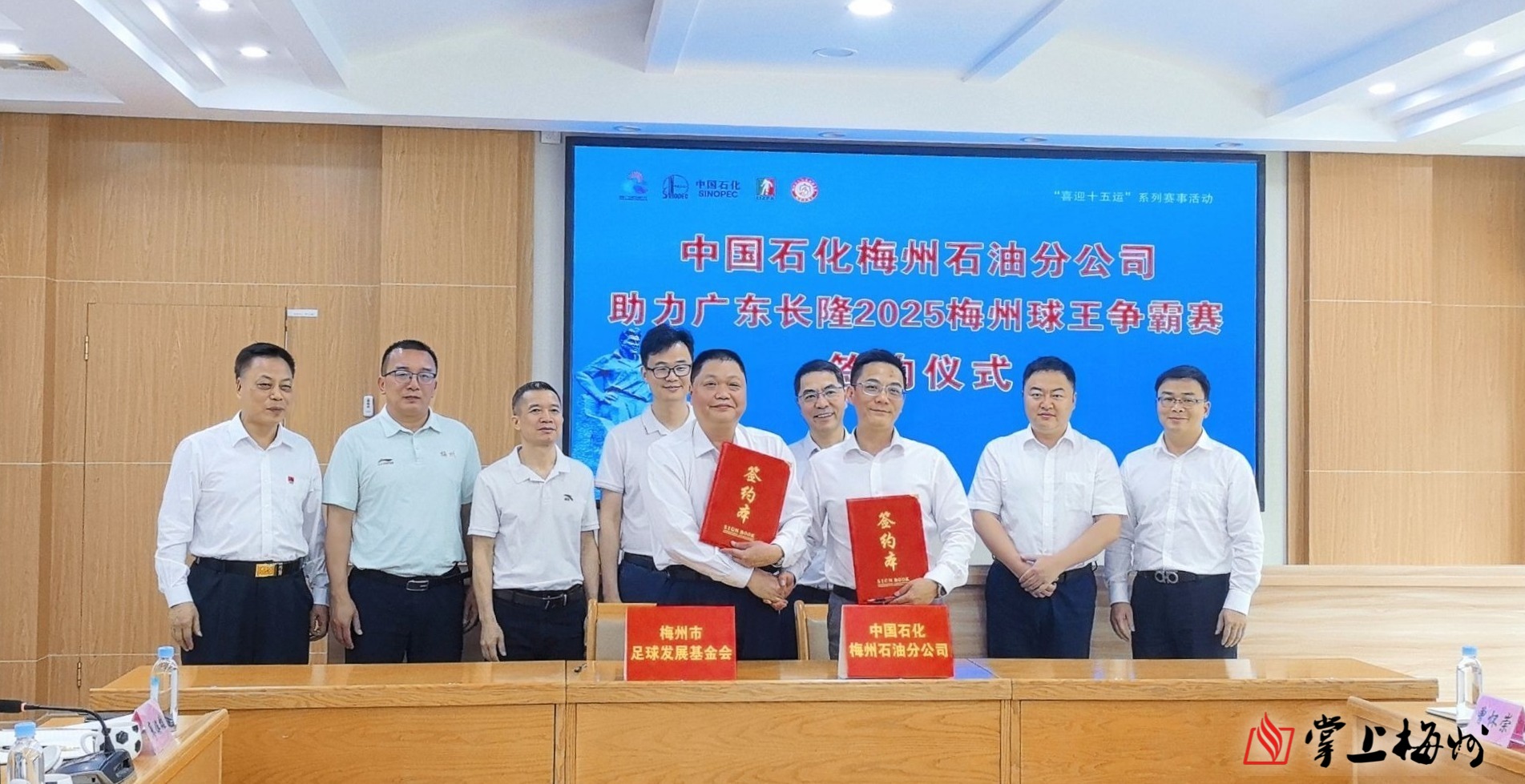 掌上梅州讯 4月27日上午,中国石化梅州石油分公司助力广东长隆2025梅州球王争霸赛签约仪式在市体育局举行。签约仪式上,中国石化梅州石油分公司与梅州市足球发展基金会签订了合作协议。