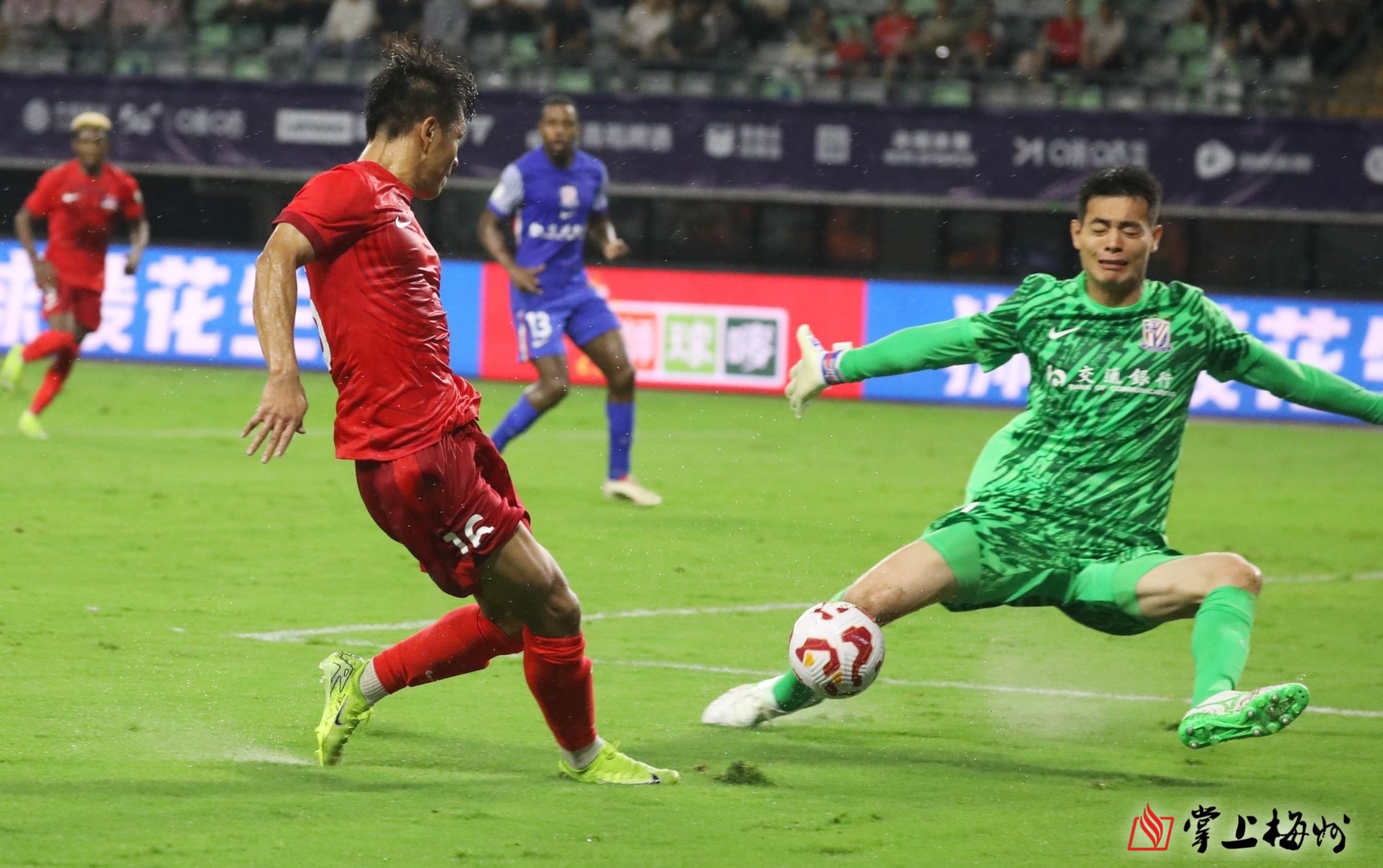杨超声射门被对方门将封堵。