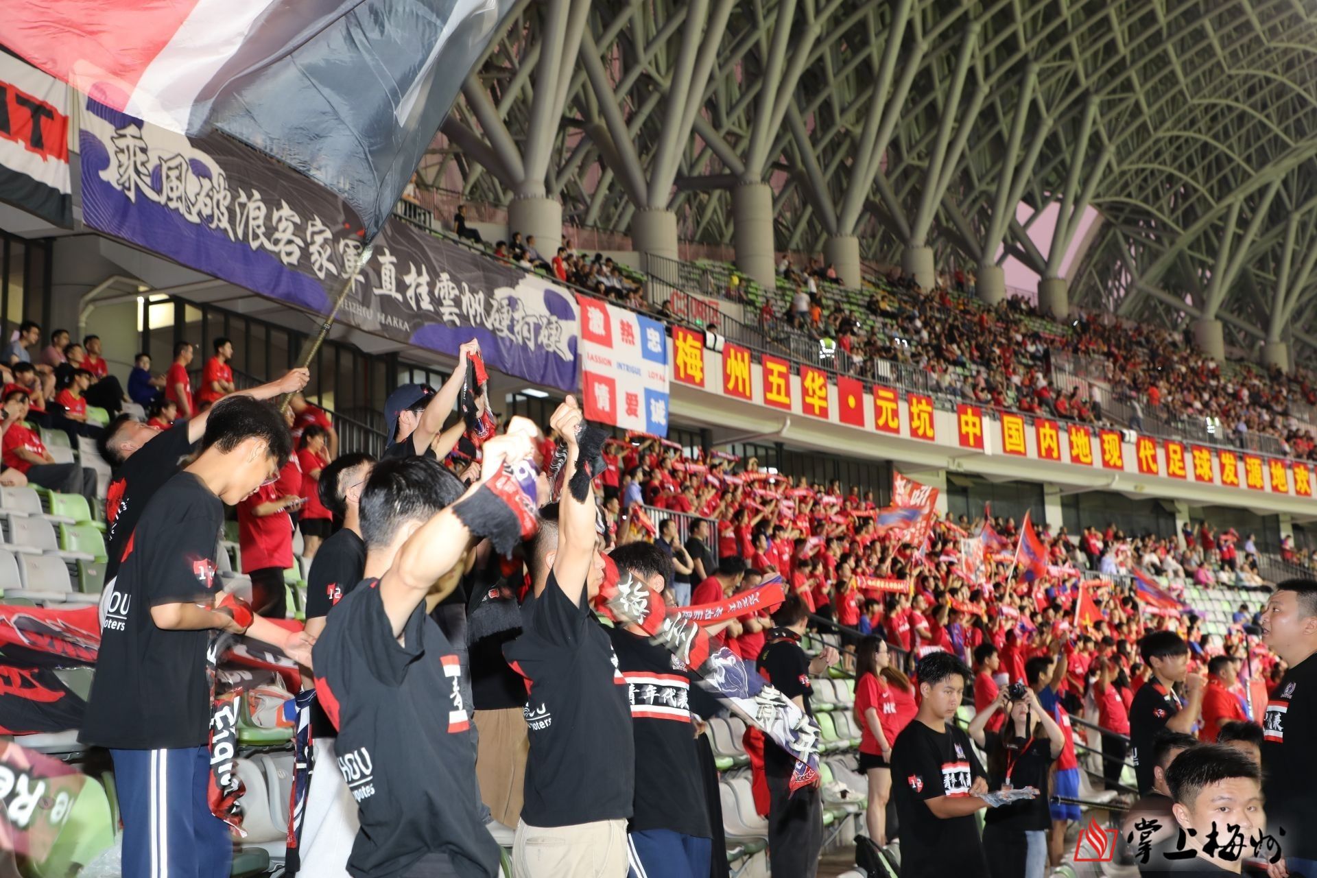 每逢梅州客家主场比赛,一大批跟李启兴一样的忠实球迷都会从梅州、潮州、揭阳、汕头、河源、惠州、深圳,甚至福建、江西等地赶来,尽情摇旗呐喊,为梅州客家加油助威。数据显示,2025赛季开赛至今的6个主场比赛,五华惠堂体育场场均有超万名球迷现场看球,氛围相当热闹。