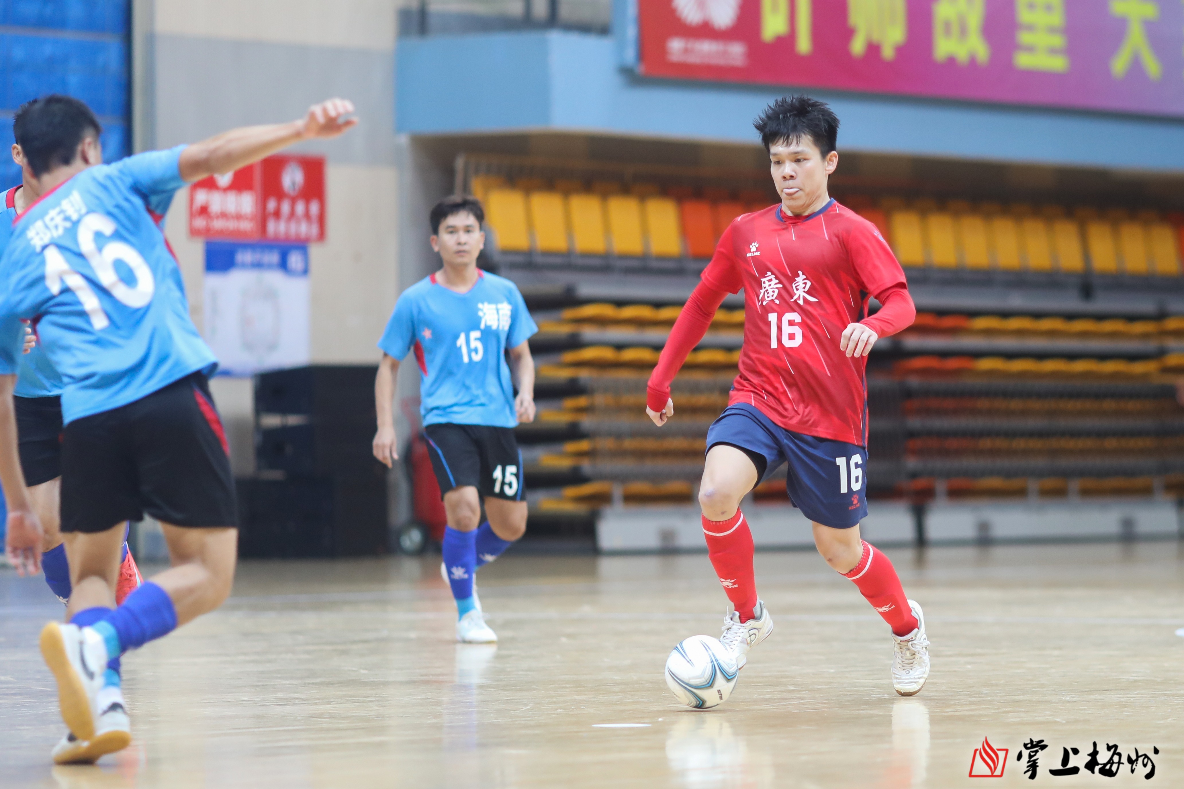 16时30分,广东队在梅县区文体中心迎战海南队。开场2分钟,广东队右路传中,接应队员成功破门。上半场还剩5分钟40秒左右,广东队多次打门并最终得分,2:0。最后几秒,广东队又远射破门,以3:0结束上半场。下半场进行了5分多钟,广东队防守成功抢断,两脚传递迅速推进至前场射门得分。海南队作出有效反击,1分钟后扳回一城。失球后的广东队依然牢牢掌控场上局面,凭借默契配合,不断撕破海南队防线,持续扩大领先优势。最后还剩40秒左右,广东队左路快速推进至前场并传中,中路球员抢点破门。7:1,广东队战胜海南队晋级四强。