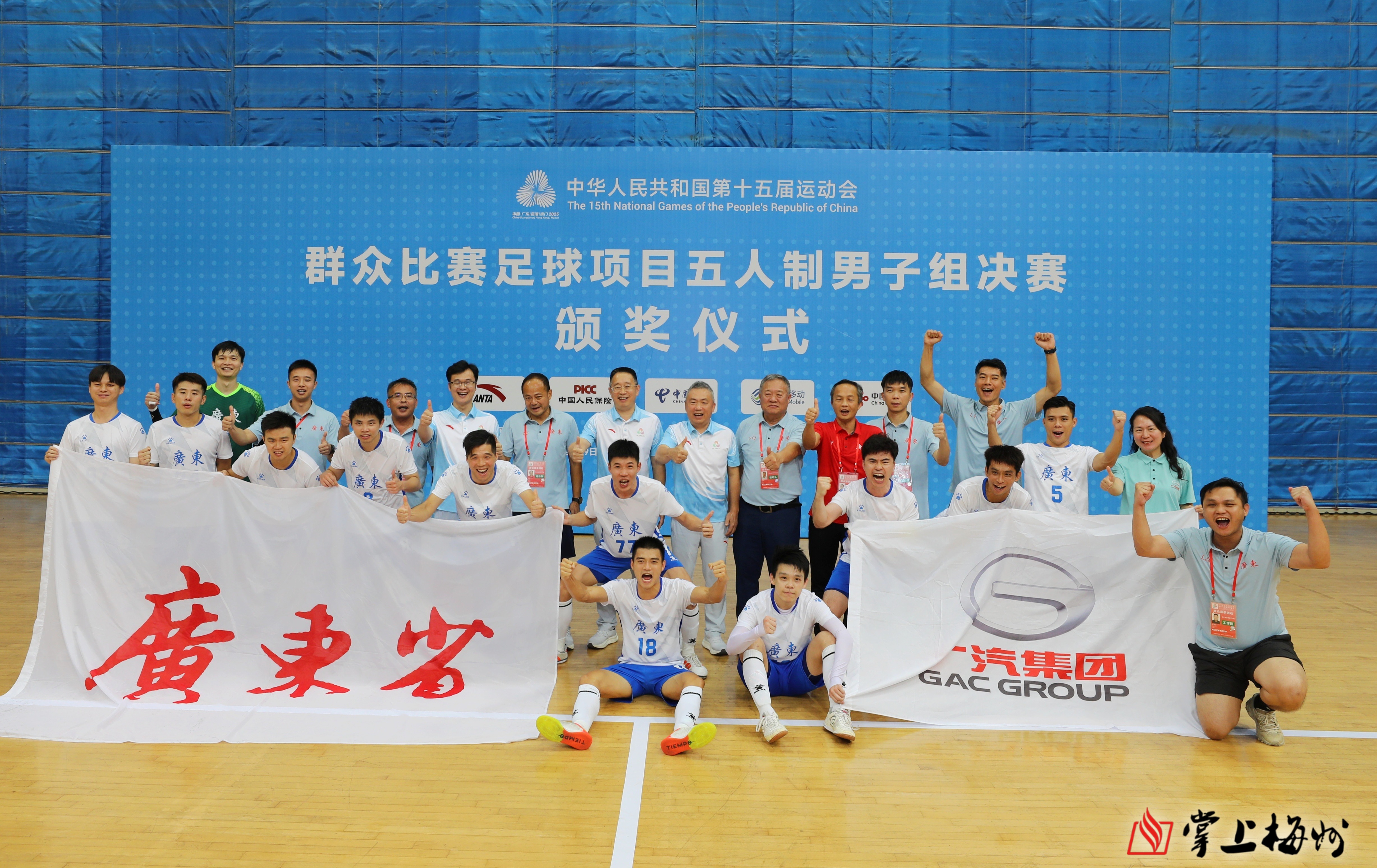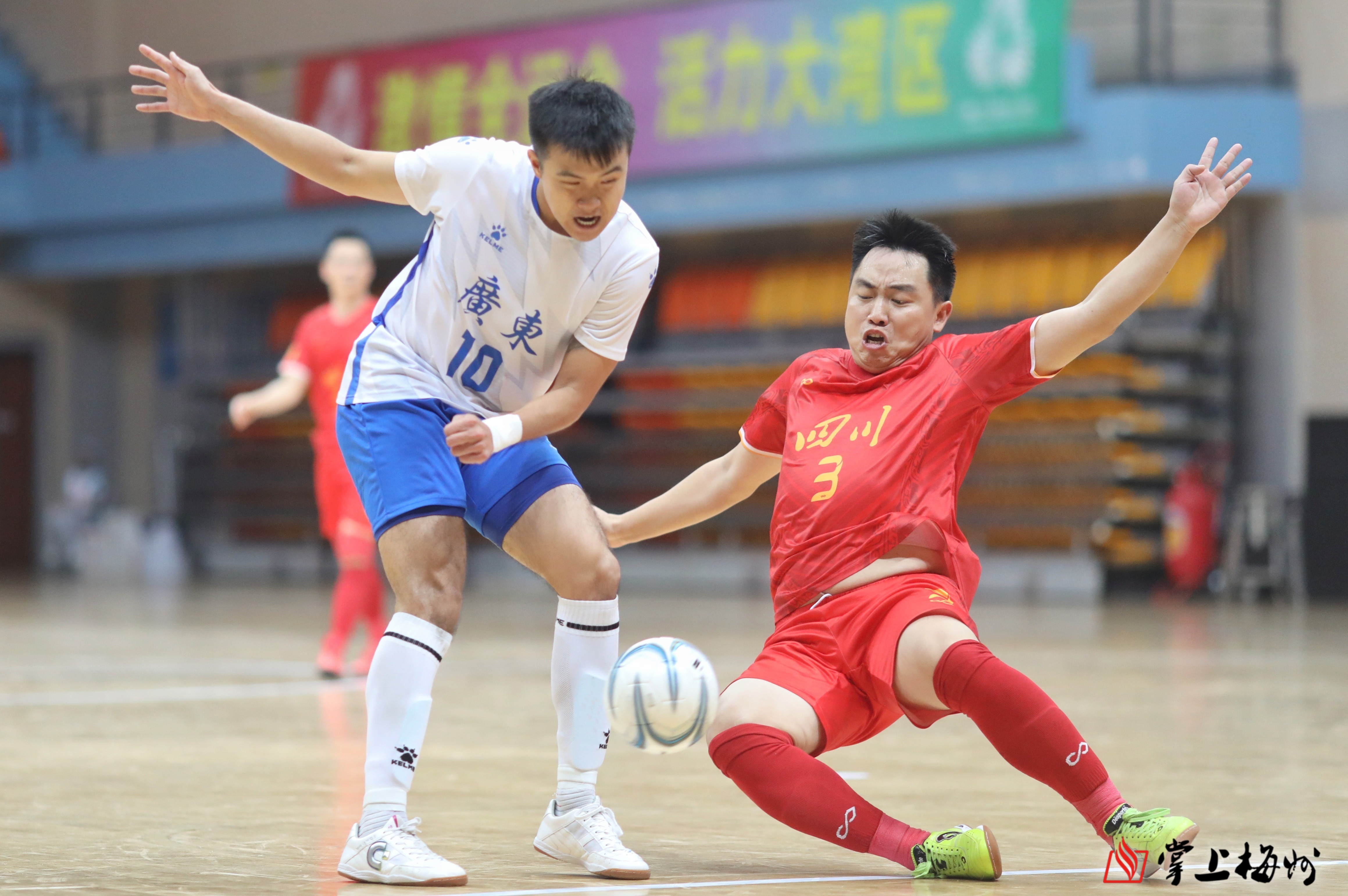 掌上梅州讯 6月29日,第十五届全国运动会群众比赛足球项目五人制男子乙组进行最后一天的比赛。决赛中,广东队以2:0战胜四川队,夺得该组比赛冠军。