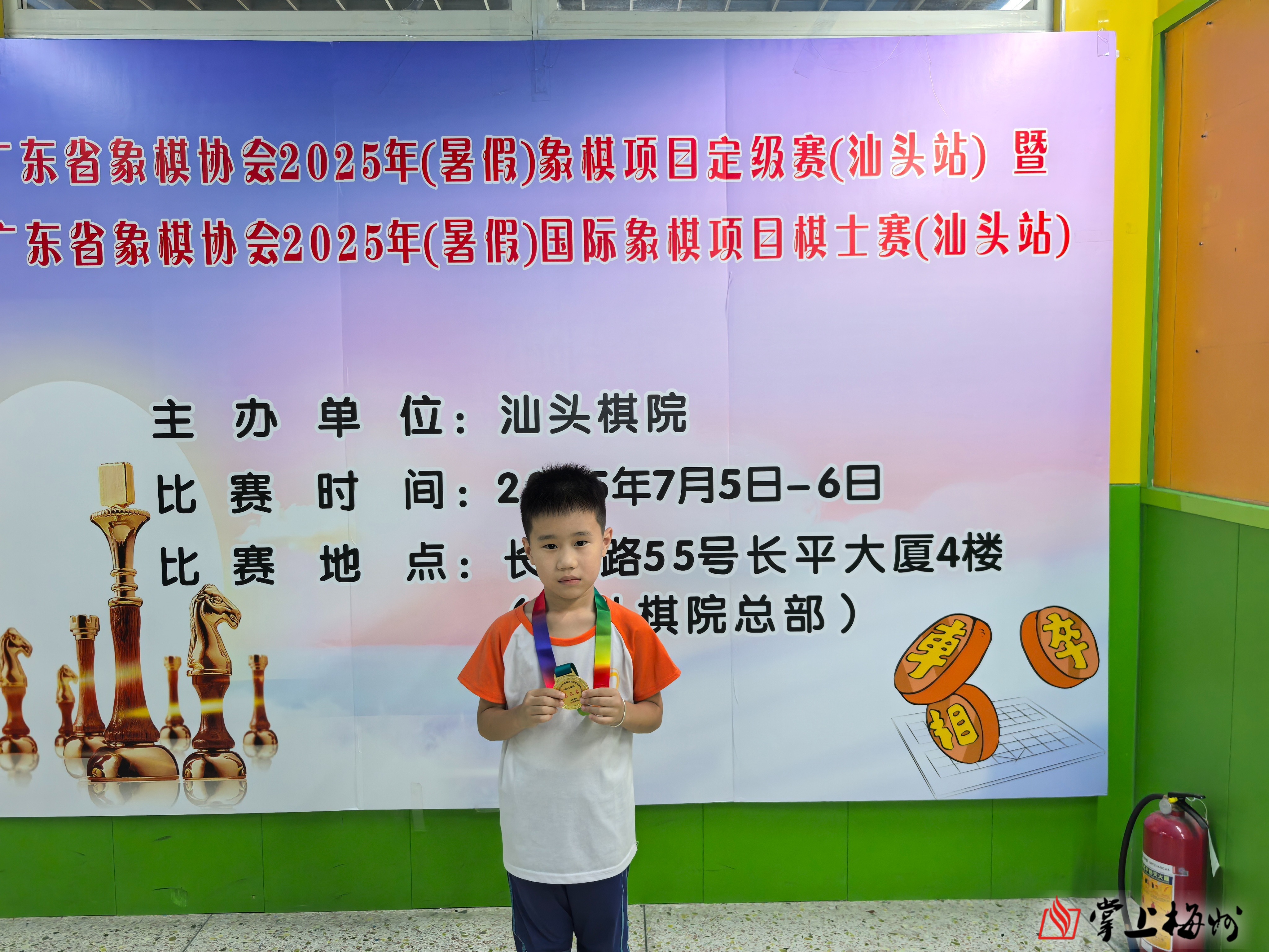 掌上梅州讯 7月5日下午,广东省象棋定级赛(汕头赛区)在汕头棋院圆满落幕。我市小棋手张海铭在此次比赛中发挥出色,赢得一级组季军,按照竞赛规则,获得了“地方大师”称号,成为梅州目前年龄最小的“地方大师”。