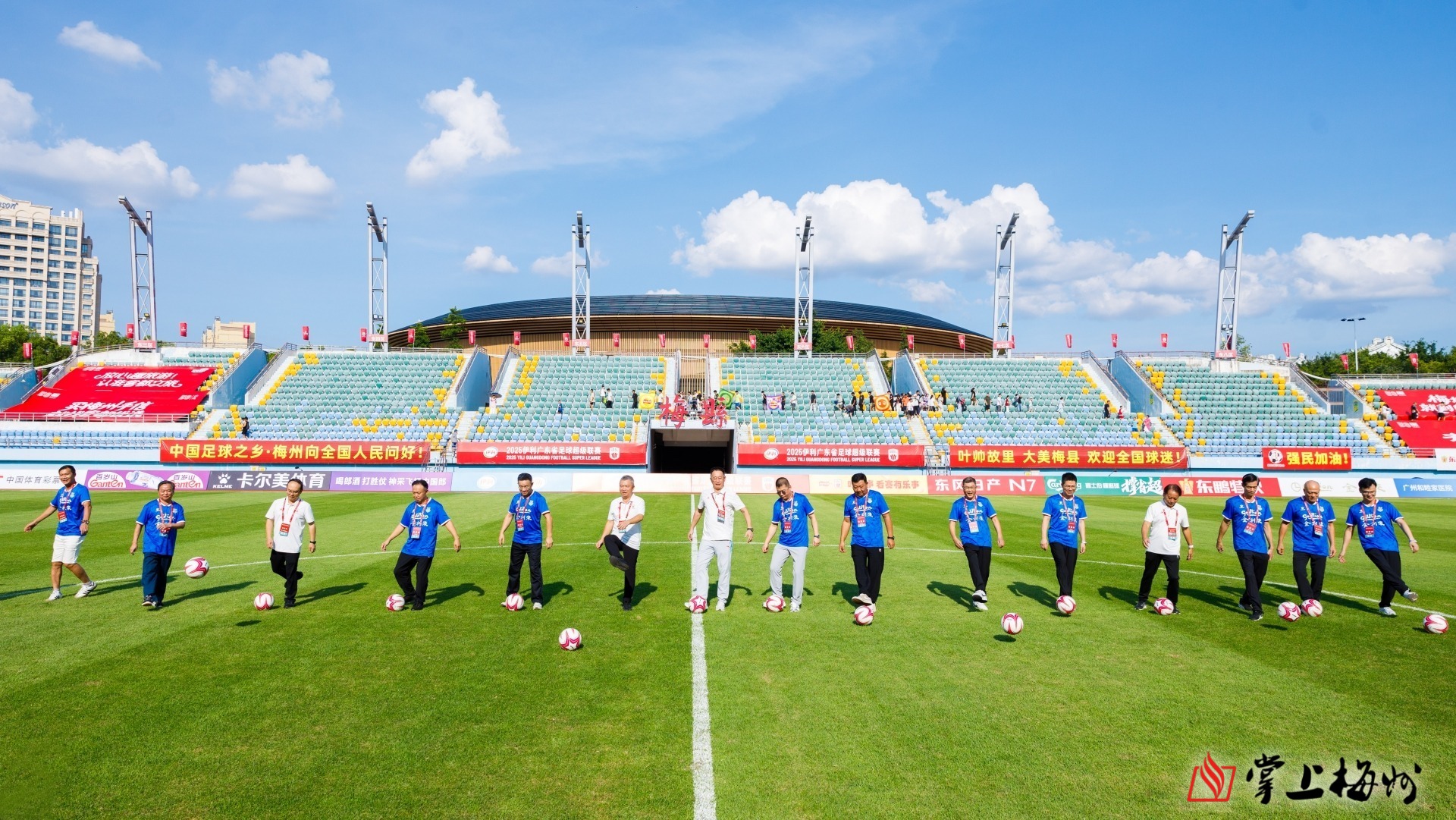 掌上梅州讯 南派足球,超粤梦想。8月9日下午,2025年广东省足球超级联赛(简称“省超”)开赛仪式在梅县区曾宪梓体育场举行,11000余名球迷涌入现场观赛,为梅州强民队首战珠海华发队呐喊助威。