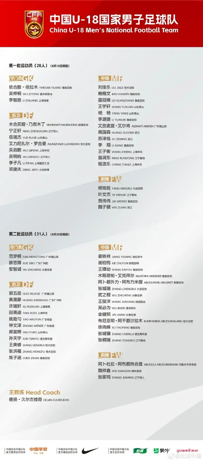 此次集训名单分两批公布,共有59名适龄精英球员入选本期集训阵容。为全力备战2026年U20亚洲杯预选赛,这支年轻的国字号队伍将于8月18日至9月8日,前往国家足球训练基地以及内蒙古自治区包头市展开集训,并出征第33届中日韩青少年运动会。