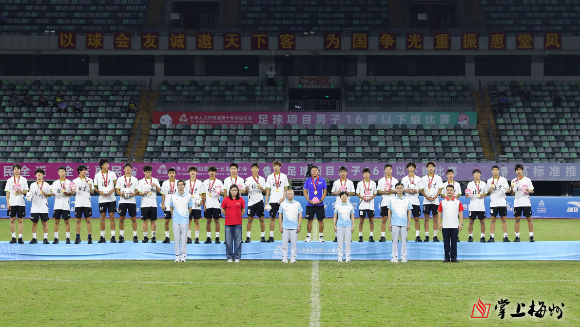 掌上梅州讯 9月15日,十五运会足球项目男子16岁以下组比赛在梅州五华落下帷幕。在决赛中,北京队以3:1战胜湖北队夺得本次赛事冠军。此外,山东队在三四名决赛中战胜江苏队获得季军。东道主广东队获得第七名。