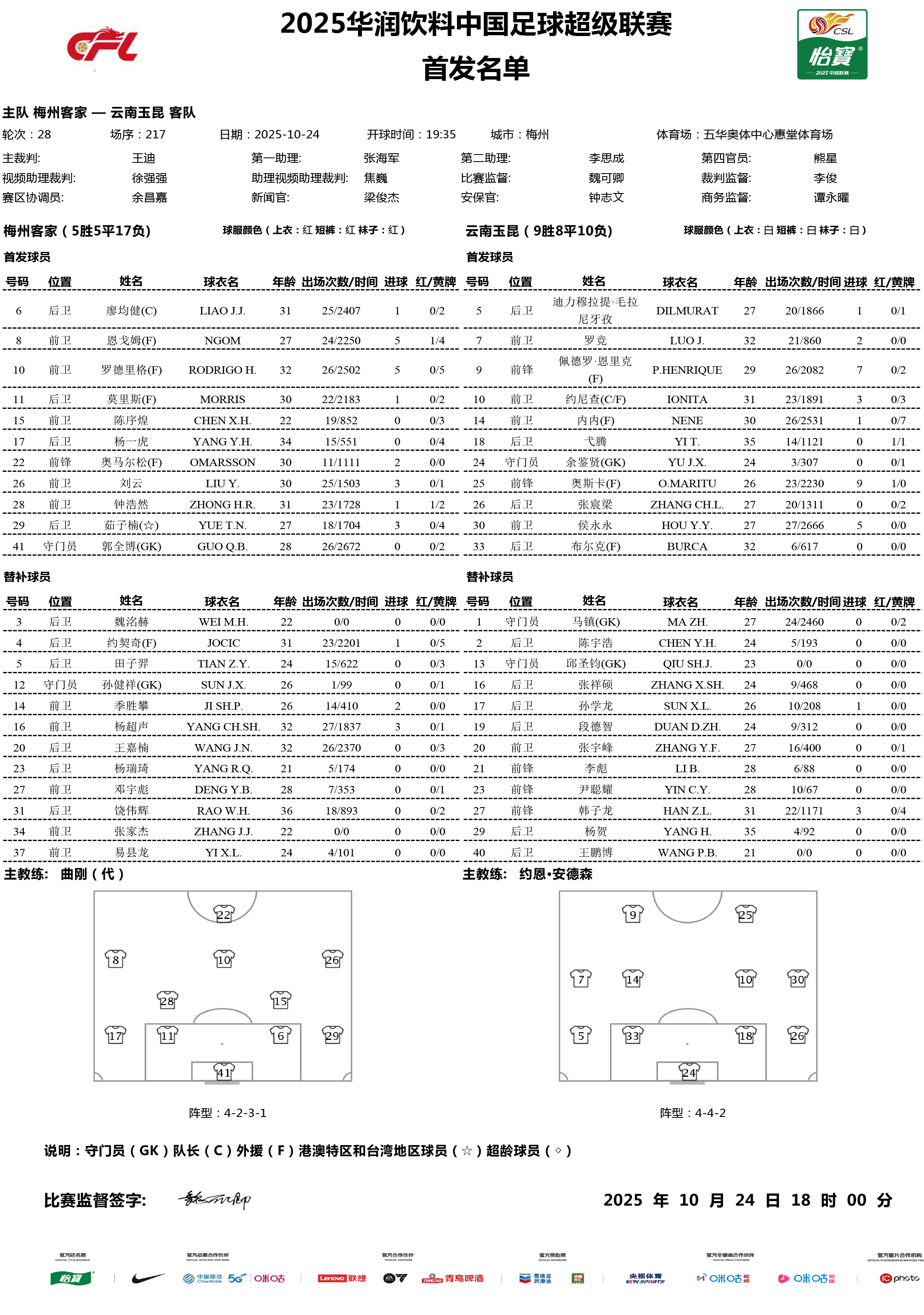 本场比赛,代理主帅曲刚排出四外援同时首发的阵容,约契奇在替补席待命。云南玉昆五外援首发登场。