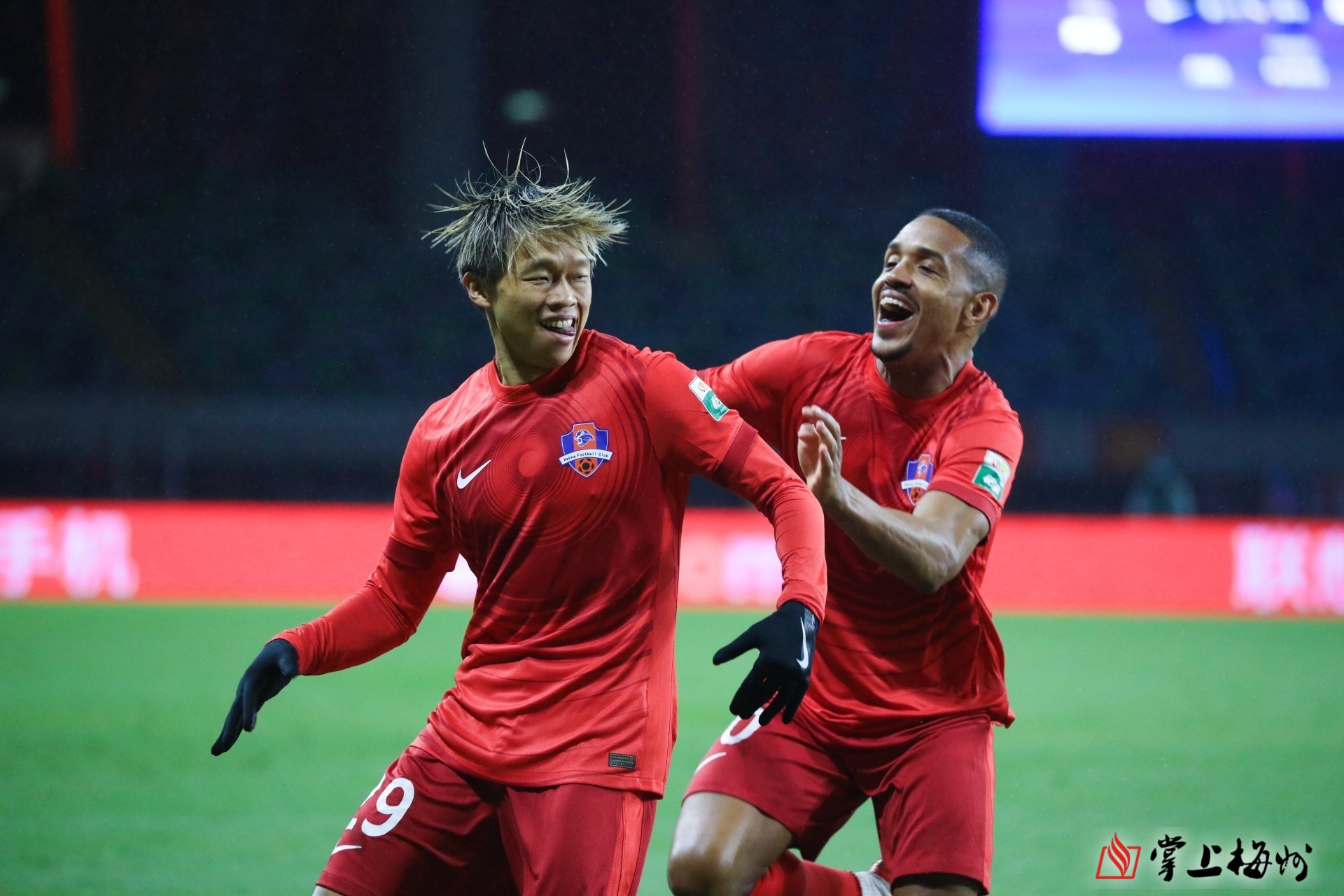 3月29日,中超联赛第3轮,梅州客家坐镇主场迎战山东泰山,图为主队球员茹子楠进球后与队友庆祝。遗憾的是,梅州客家3球领先的情况下,被客队连追4球反超,遭遇赛季首败。