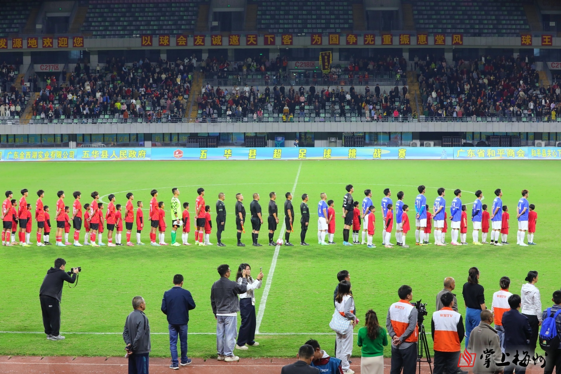 掌上梅州讯 11月24日晚,第七届世界客商大会五华系列活动——五华县超足球挑战赛在五华惠堂体育场打响,由本土冠军横陂队组成五华县超队迎战强手和平南投队,以竞技之名续写客属情谊。