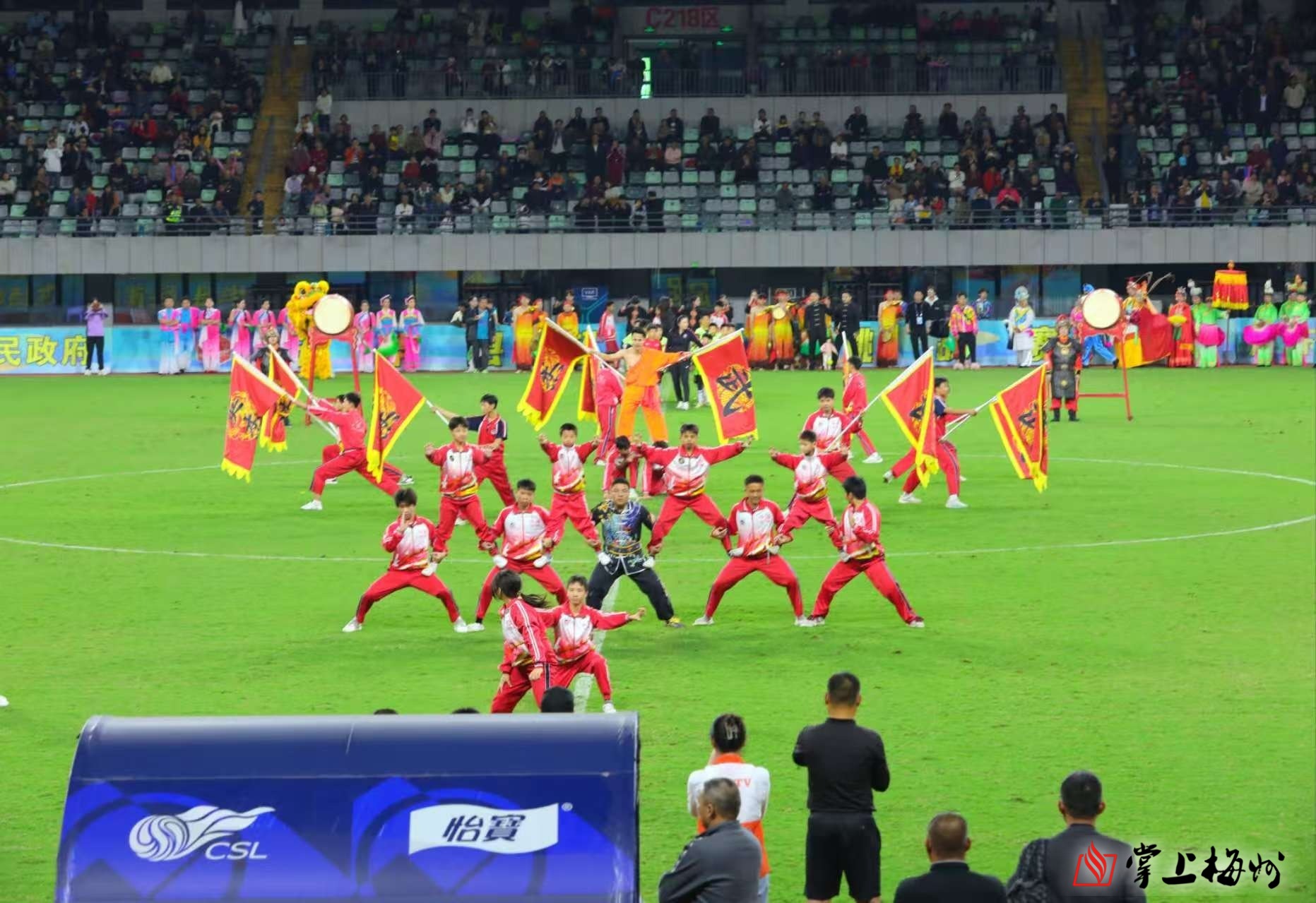此外,中场休息间隙,《文武五华》《球技表演》以及竹马舞、采茶戏、木偶戏、舞龙舞狮等融合客家文化与足球元素的文艺表演,让远道而来的客人及观众沉浸式感受竞技魅力与客家风情,深刻领略五华的文化魅力。
