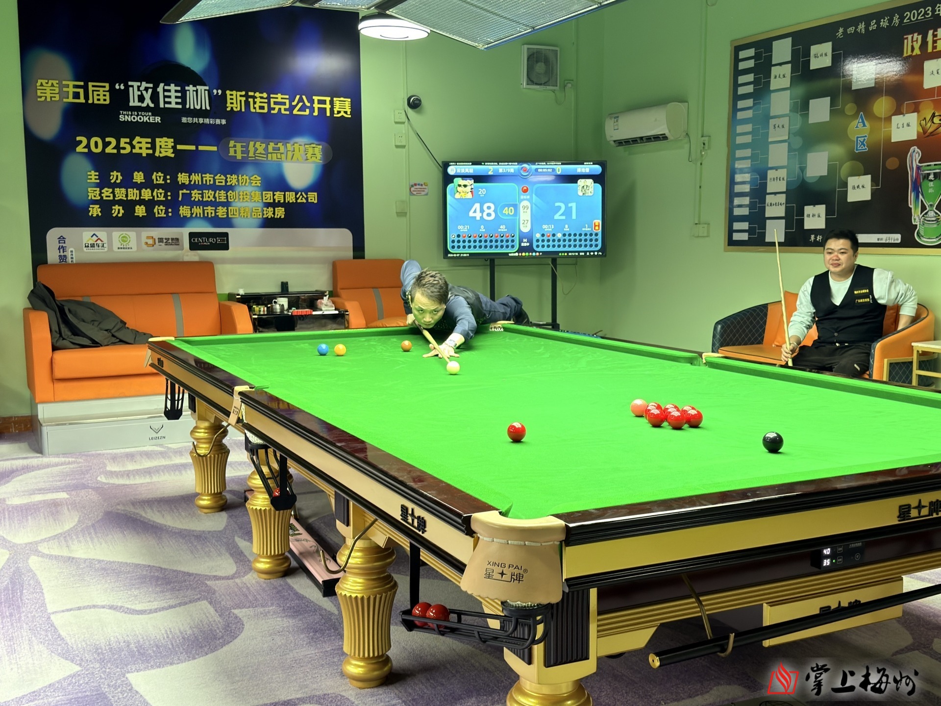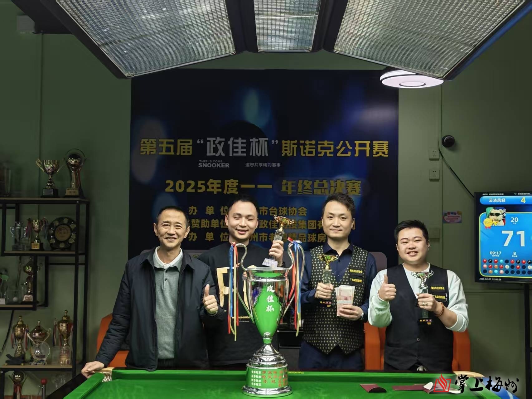掌上梅州讯 2月7日,由梅州市台球协会主办的2025年度梅州市“政佳杯”业余斯诺克年终总决赛在梅城老四球馆落下帷幕,经过激烈角逐,温宝以5:1战胜李言捧起年终总冠军。