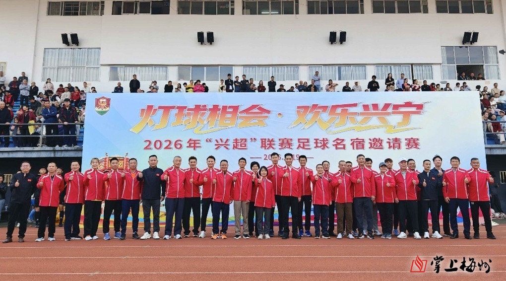 掌上梅州讯 2月19日下午,灯球相会·欢乐兴宁——2026年“兴超”联赛足球名宿邀请赛,在兴宁市大坝里体育场火热开赛。兴宁市委副书记、市长赵超文,副市长刘小容,梅州市体育局副局长吴仁发等领导和嘉宾出席活动,与市民游客一同见证这场新春足球盛宴。