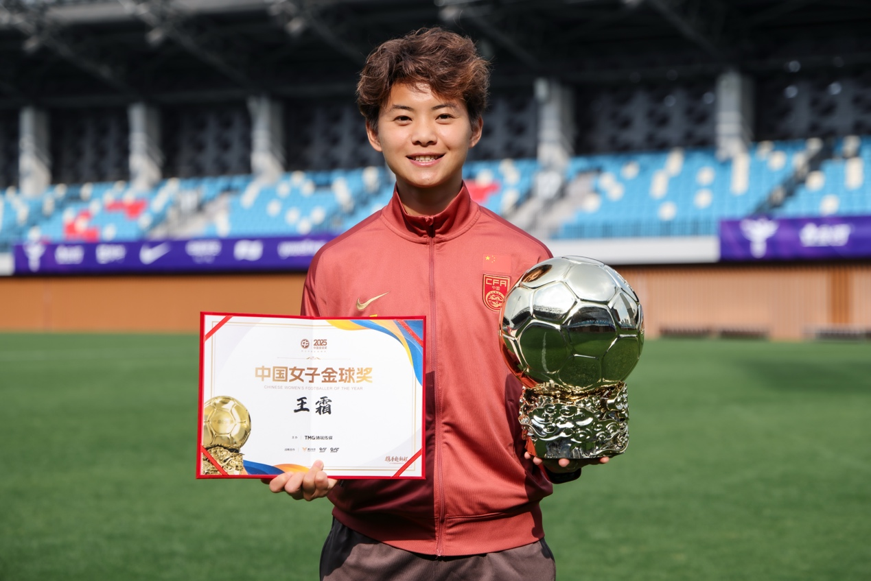 中国女子金球奖方面,时隔一年重回候选名单的王霜当仁不让,她过去一年在亚冠赛场和洲际舞台多次奉上的高光时刻,无可争议地征服了评委。继续海外生涯的李梦雯排名第二,第一次入围三甲的中国女足年度最佳射手邵子钦位列第三。在颁奖仪式现场,王霜的哥哥曹国栋代为领奖,前中国女足主帅水庆霞为其颁奖,并向征战于澳大利亚亚洲杯的中国女足送上寄语。