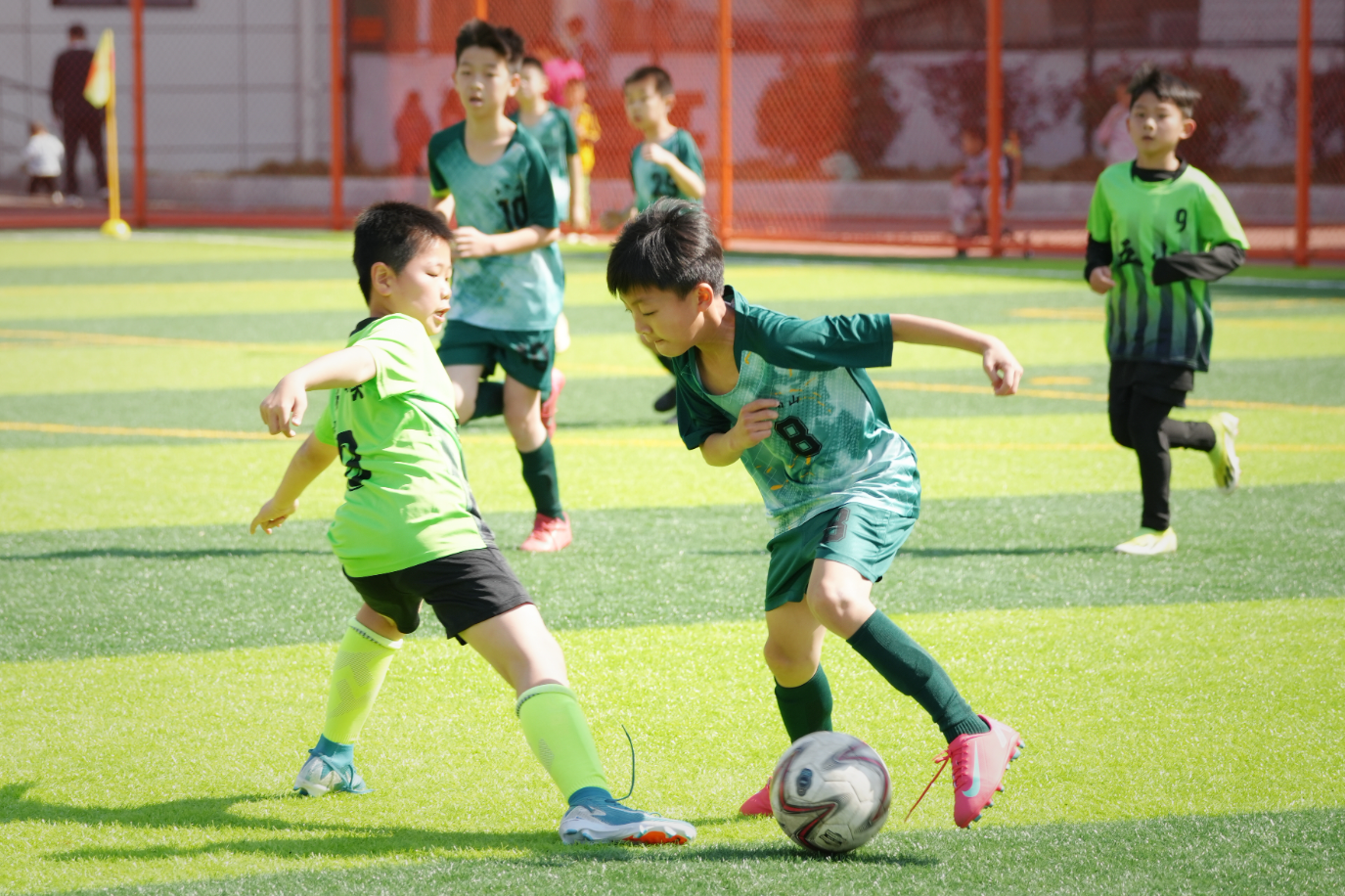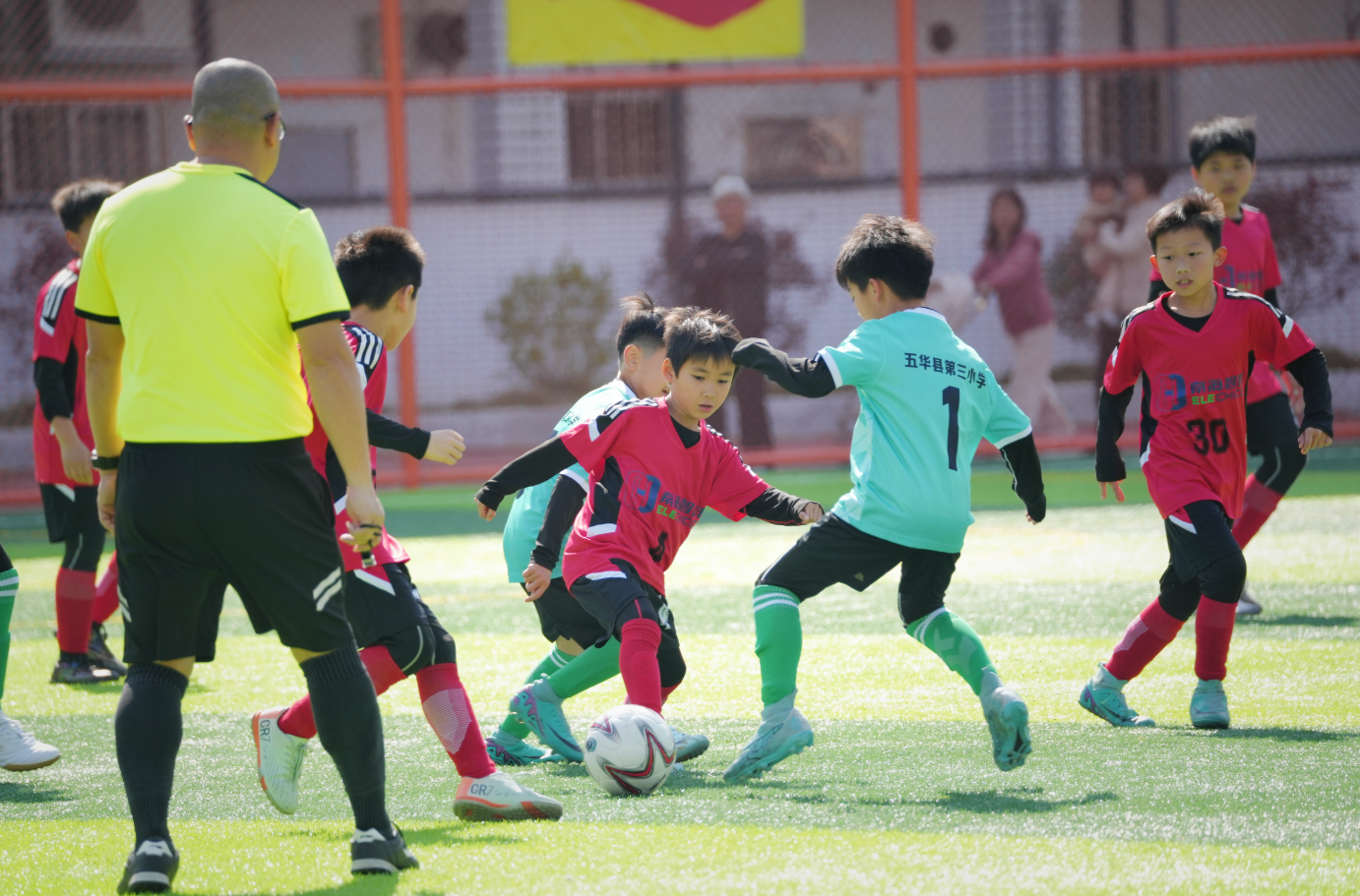 揭幕战由五华县第一小学对阵五华县第三小学,随着主裁判一声哨响,小球员们迅速进入状态,在绿茵场上奔跑、拼抢、传切配合,展现了扎实的基本功和良好的竞技状态。场边,教练员的指挥声、队友的呐喊声和观众的加油声此起彼伏,现场气氛热烈非凡。