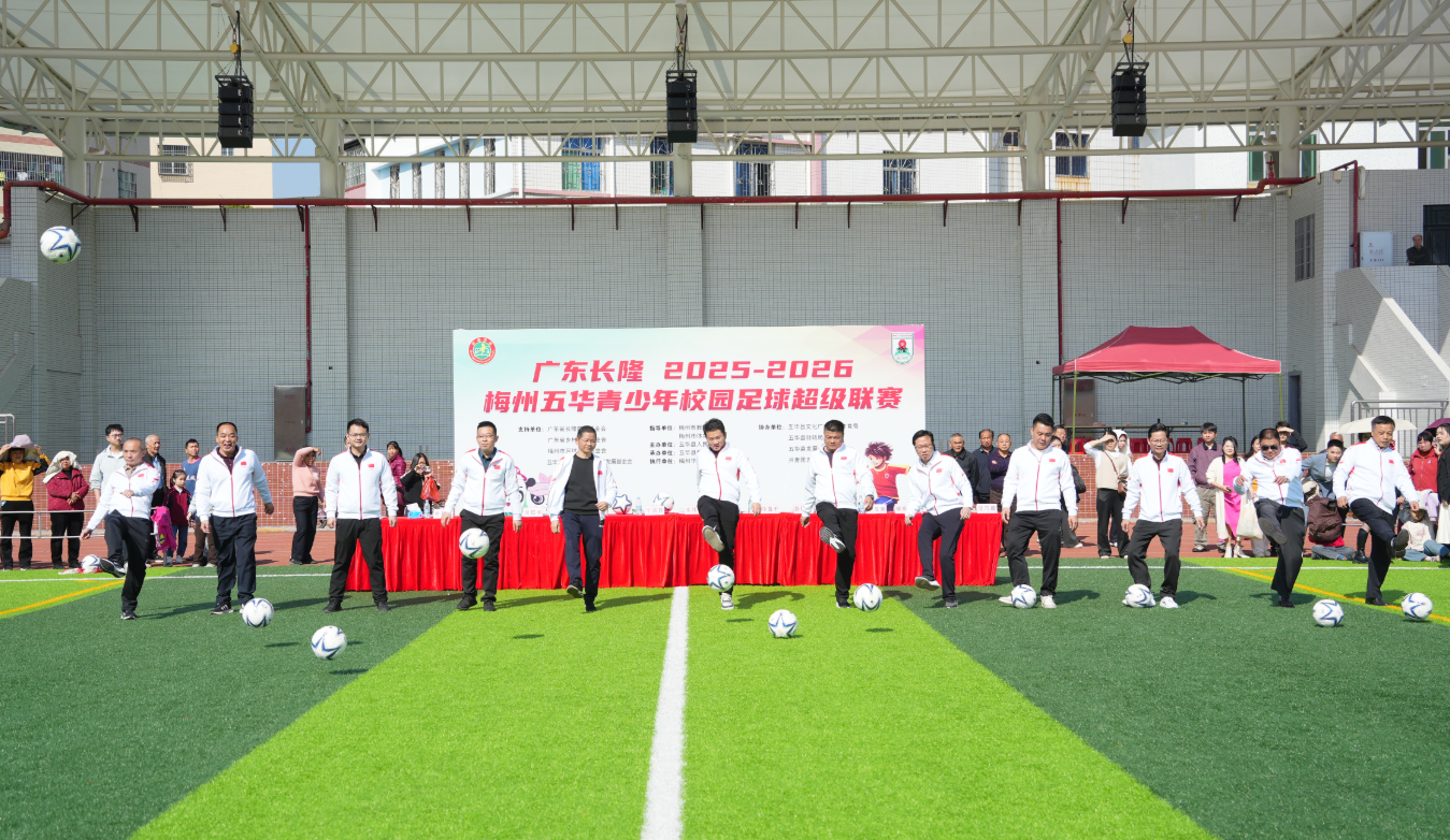 掌上梅州讯 3月14日上午,全市规模最大、参与人数最多、持续时间最长的青少年足球联赛——广东长隆2025-2026梅州五华青少年校园足球超级联赛(简称“五华校超”)在五华县体育场长隆足球场开幕,来自五华县50所学校的125支球队,2000余名青少年足球运动员将在为期近半年的时间里,进行300多场较量,角逐每个项目的冠军杯。
