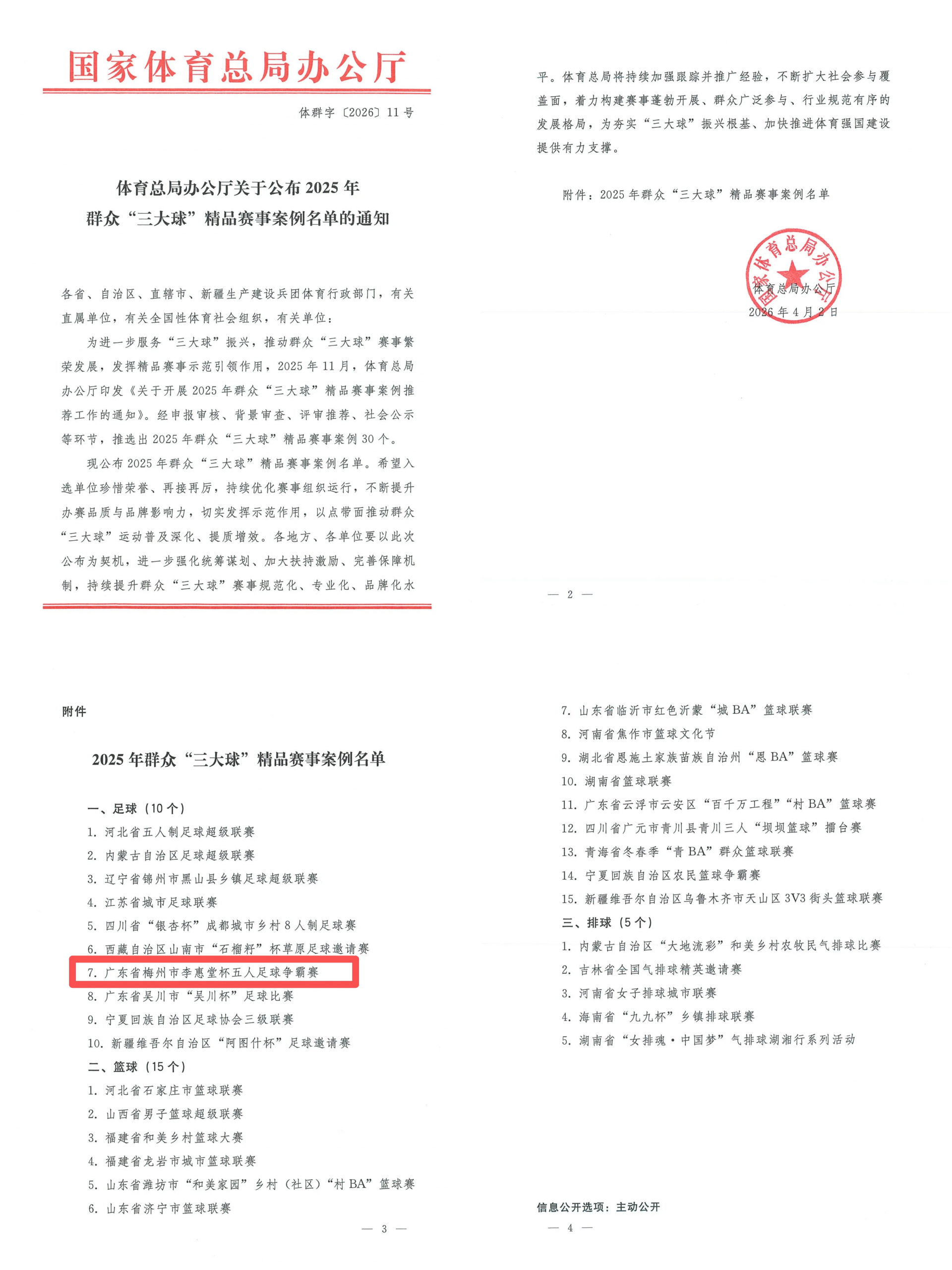 【延伸阅读】梅州入选!全国群众“三大球”精品赛事案例名单公布