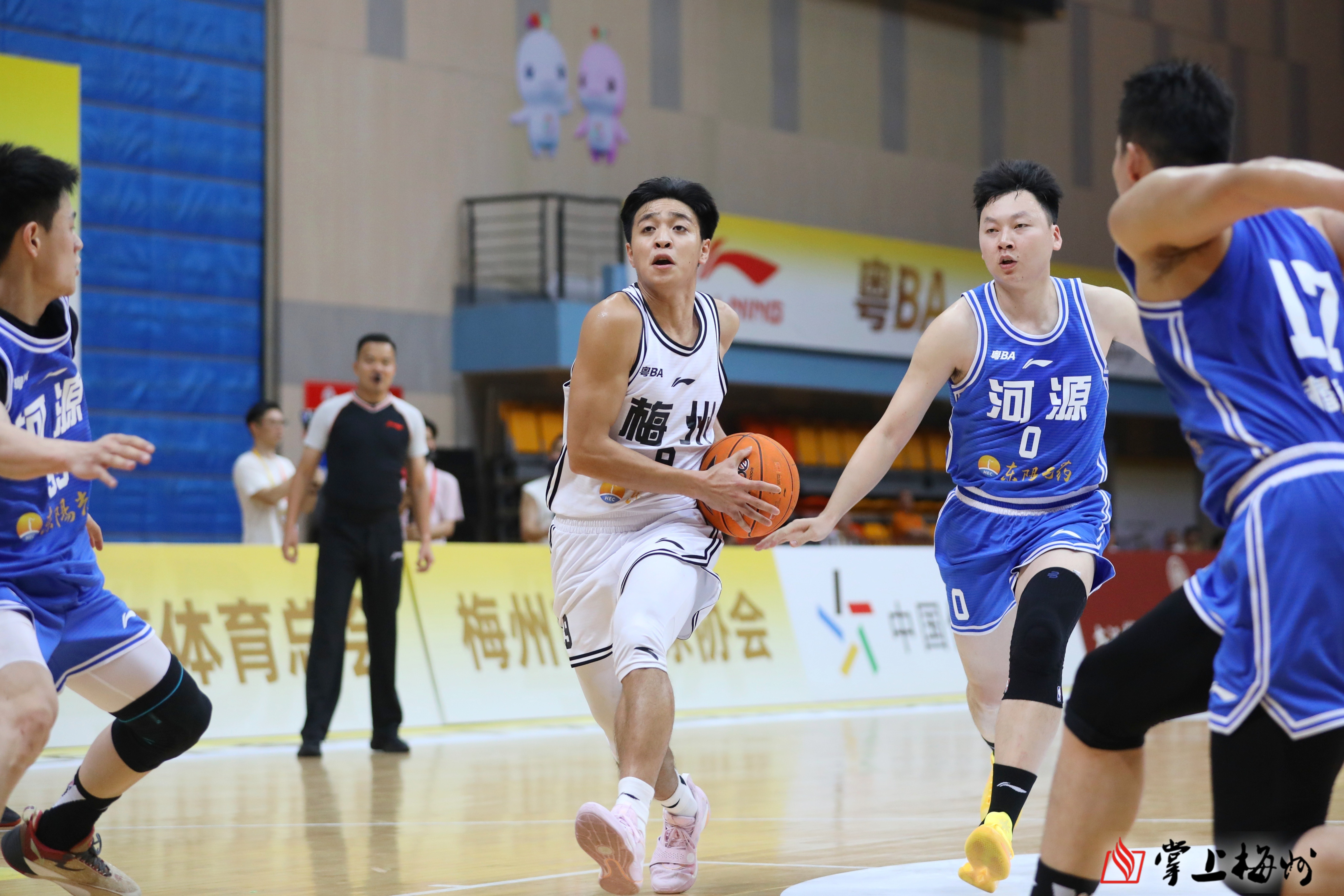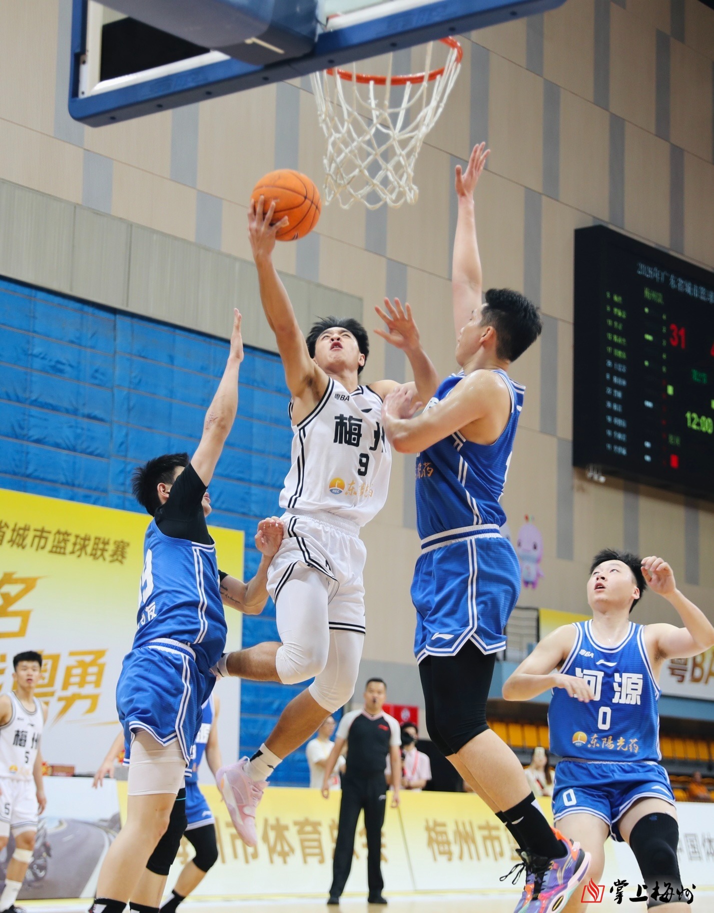 掌上梅州讯  4月11日晚上,2026年广东省城市篮球联赛(简称“粤BA”)常规赛第三轮打响,东区迎来客家德比,梅州队在主场梅县区文体中心迎战卫冕冠军河源队。经过40分钟激战,梅州队61:94不敌河源队。