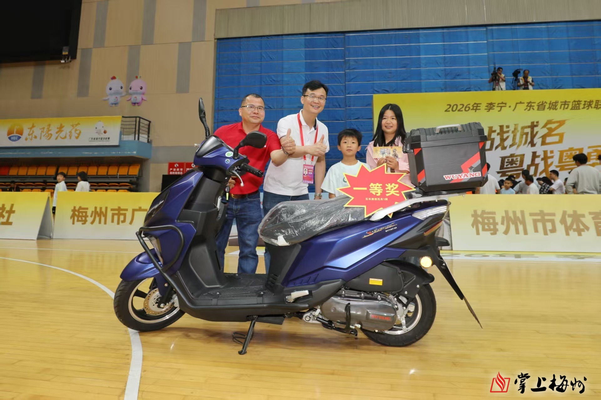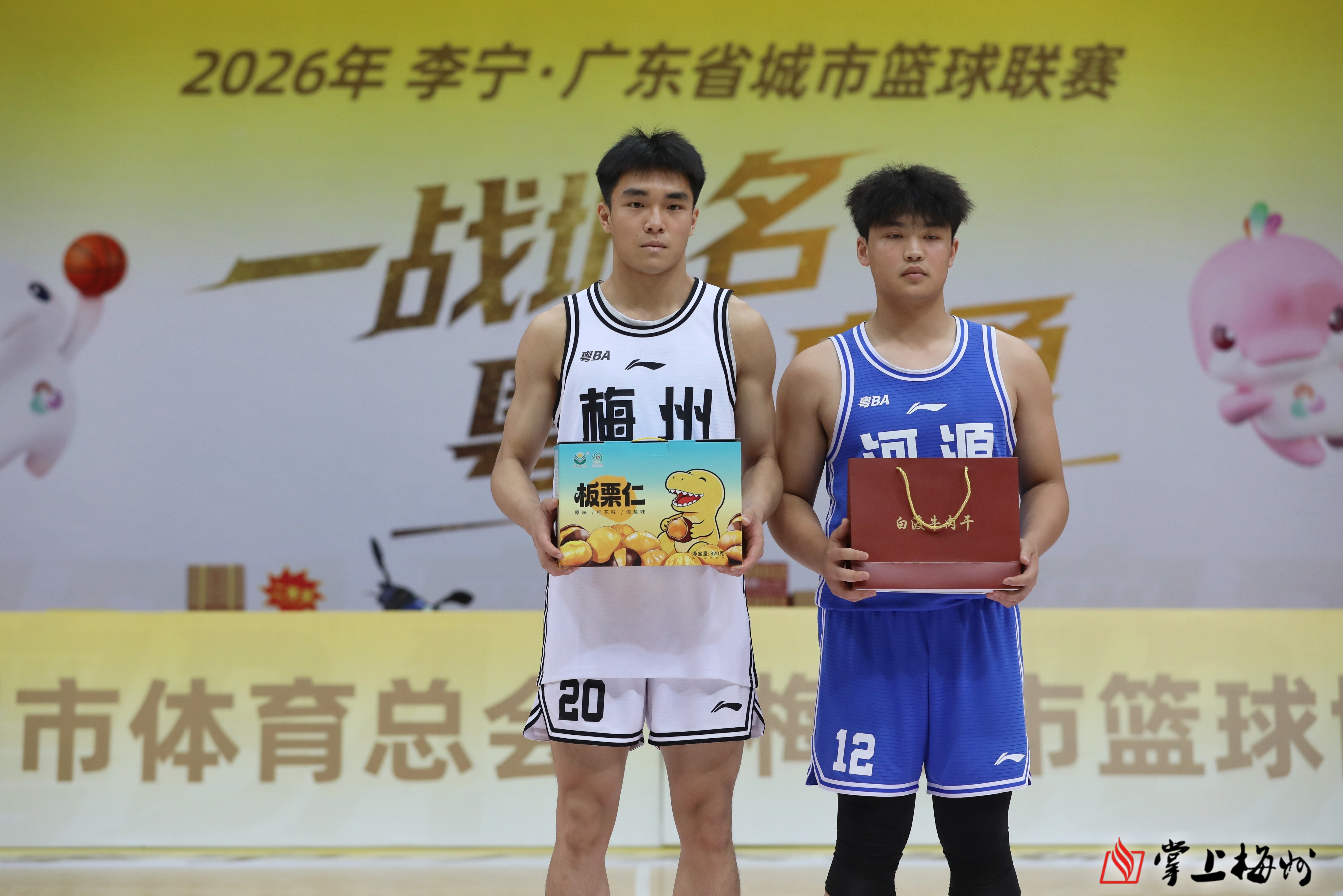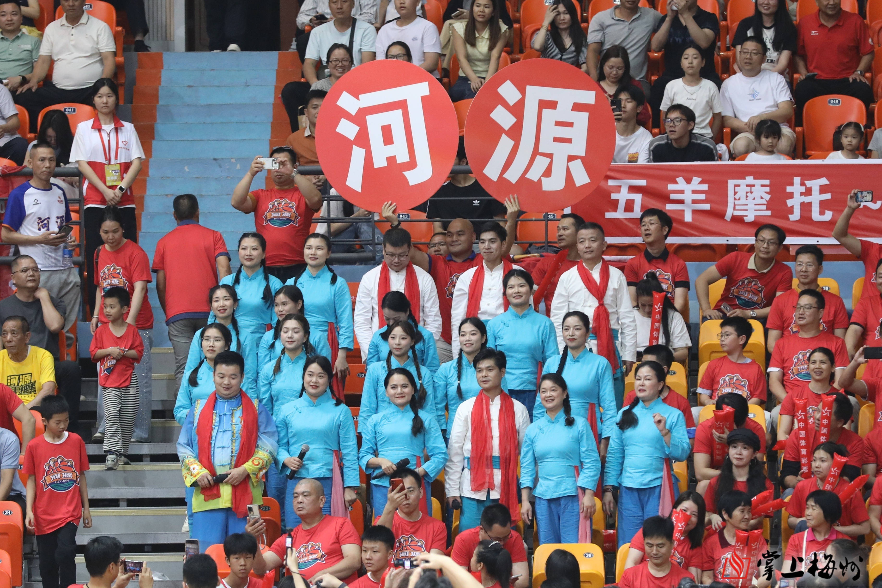 本场比赛,胜负之外,更见温度与情怀。赛前,梅州市山歌剧团带来活力啦啦操表演,瞬间点燃全场氛围。紧接着举行的抽奖环节更是让现场气氛持续升温。中场休息迎来全场最温馨时刻,两队互换家乡特色礼物:河源队带来国家地理标志产品东源板栗,梅州队回赠客家特色白渡牛肉干。小小礼物传递着浓浓客家情谊。随着终极大奖广州五羊摩托车的送出,全场尖叫不断,将今晚气氛推向顶点。