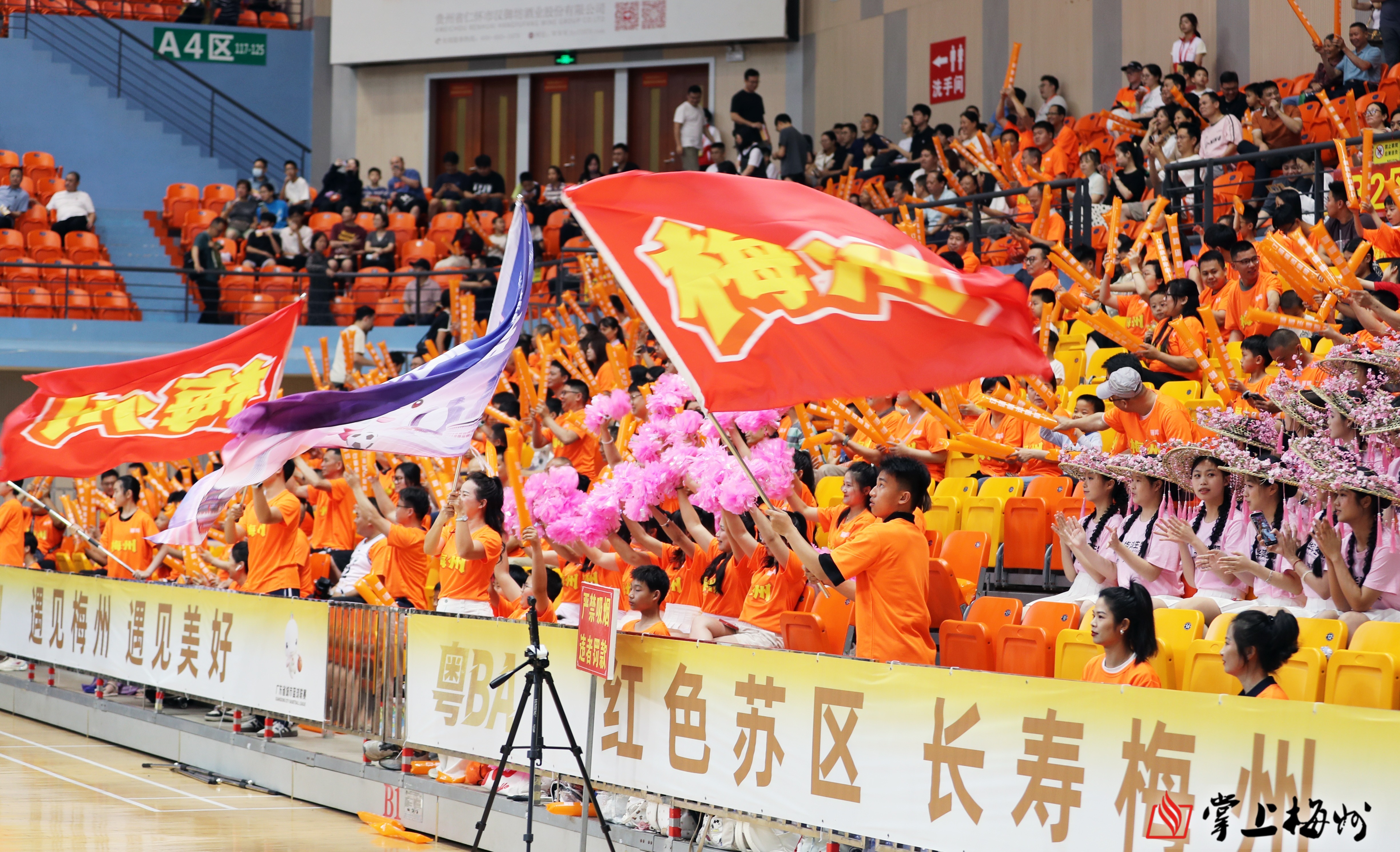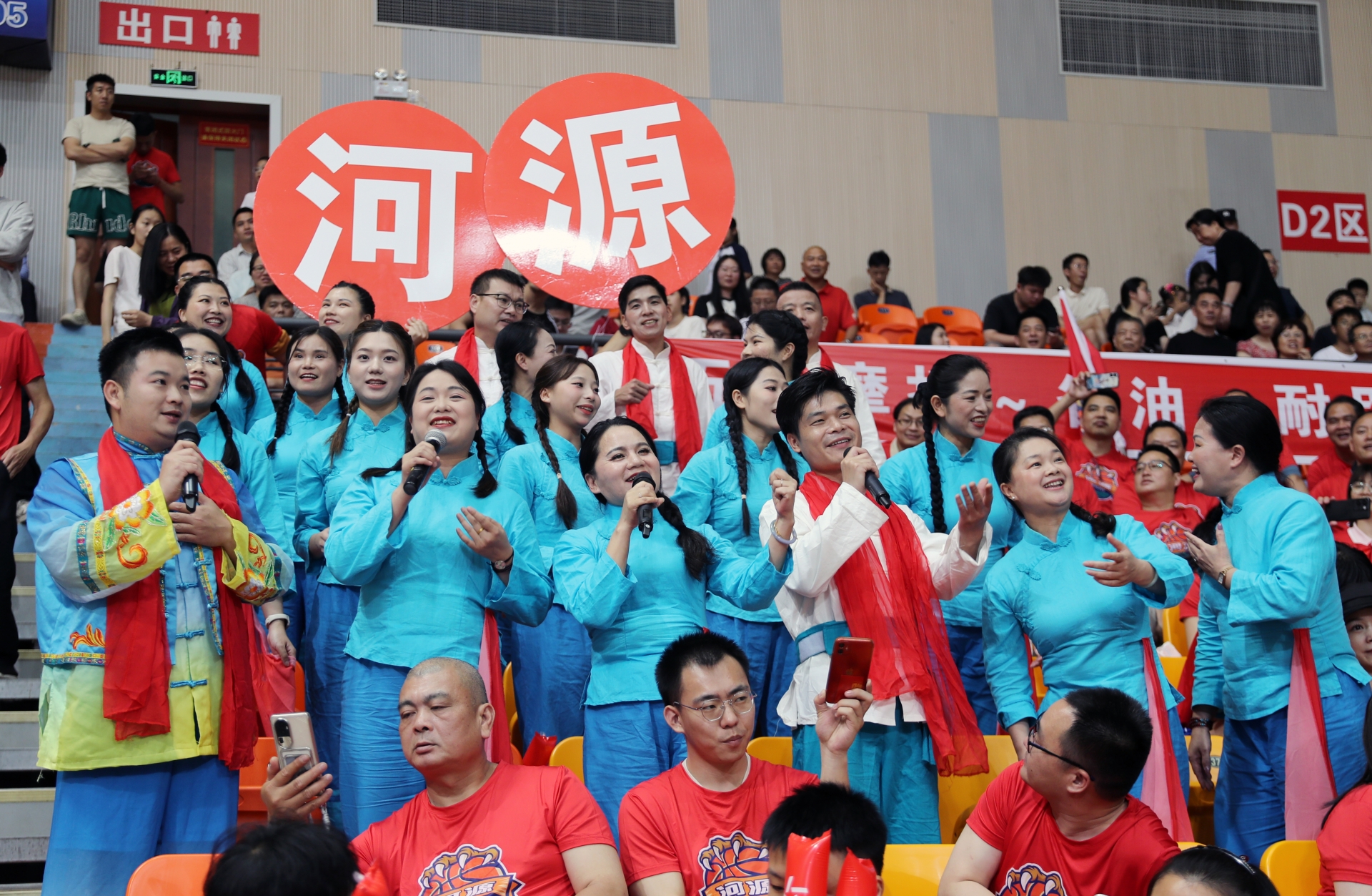 两边你来我往,有唱有和,把整个球馆都变成了客家人的大歌堂。悠扬的曲调、质朴的歌词,引发梅河两地“天下客家一家亲”的情感共鸣,为这场客家德比注入独特的文化韵味。