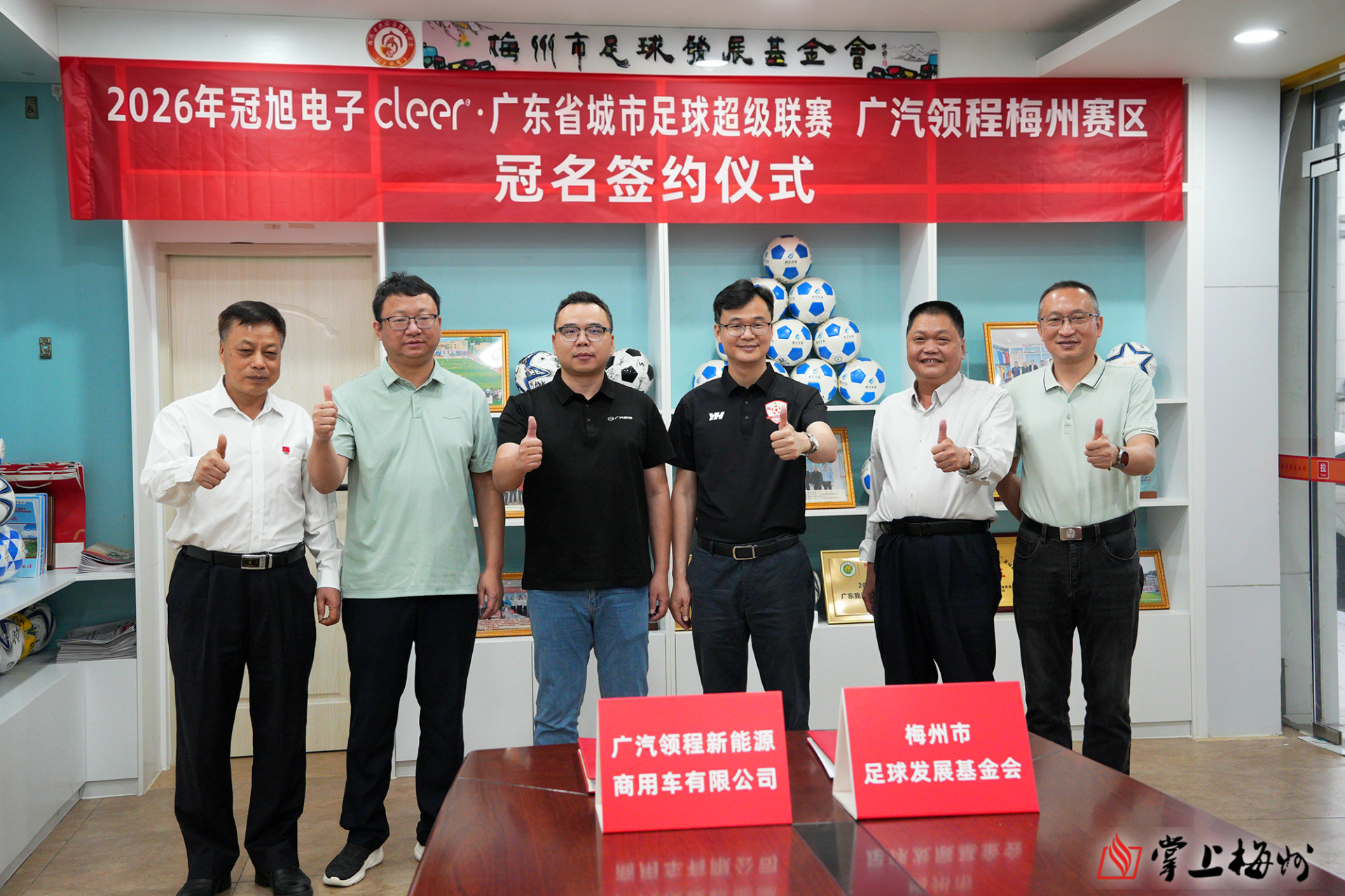掌上梅州讯 4月17日上午,2026年冠旭电子cleer•广东省城市足球超级联赛(以下简称“粤超”)广汽领程梅州赛区签约仪式在梅州市足球发展基金会举行。