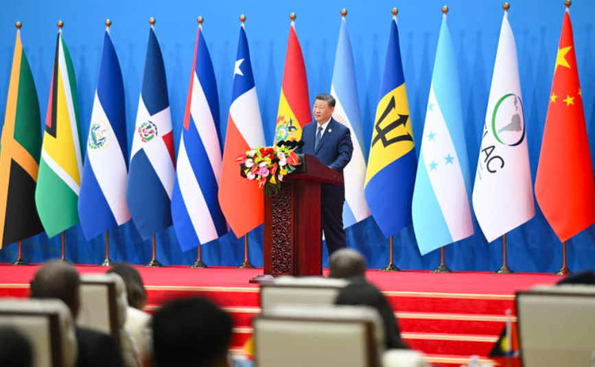 习近平最后强调,无论国际风云如何变化,中国始终做拉美和加勒比国家的好朋友、好伙伴,同拉方在各自现代化征程上并肩前行,共同谱写构建中拉命运共同体新篇章。