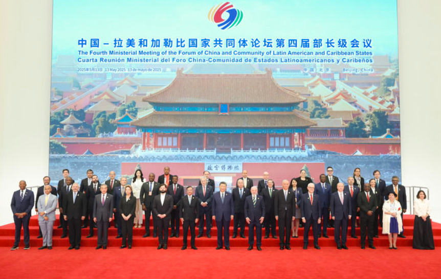 5月13日上午,国家主席习近平在北京国家会议中心出席中国-拉美和加勒比国家共同体论坛第四届部长级会议开幕式并发表主旨讲话。这是习近平同与会嘉宾集体合影。新华社记者 丁海涛 摄