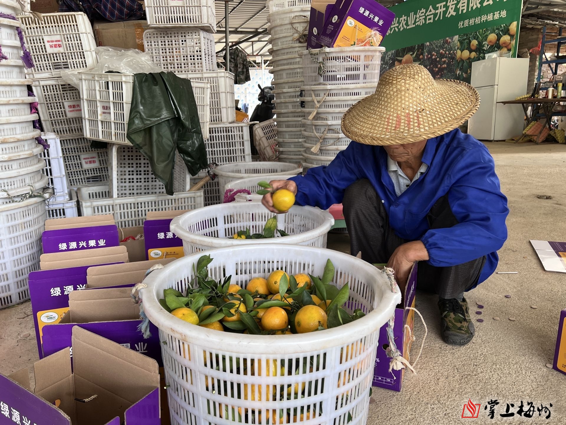 走进三社村绿源兴柑桔园,一个个金灿灿的柑桔好似挂满了枝头,个大饱满、色泽诱人,空气中还弥漫着沁人心脾的桔香,让人垂涎欲滴。果农们穿梭在桔林之中,有条不紊地采摘、分拣、装框作业,趁着晴好天气,忙着采收外运。