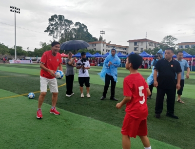 国足原队长池明华到访五华“县超”华城主场:“五华人球品好人品更好,‘县超’吸引力十足!”