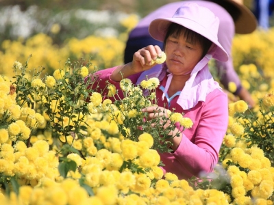 近日,五华县岐岭镇龙岭村皇菊种植基地种植的150亩金丝皇菊、皇菊、贡菊三个菊花品种竞相开放,村庄梯田犹如披上了“黄金甲”,成片的菊花在阳光照耀下灿烂金黄,娇艳欲滴;数不清的花...