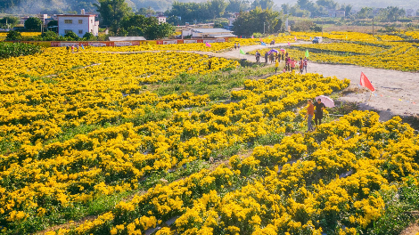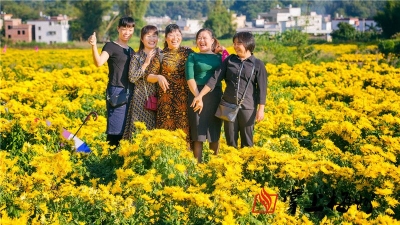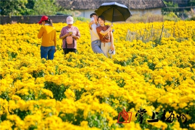 近日,五华县岐岭镇龙岭村皇菊种植基地的150亩菊花竞相开放,村庄梯田犹如披上了“黄金甲”,美丽的花海吸引大量游客漫步观赏。