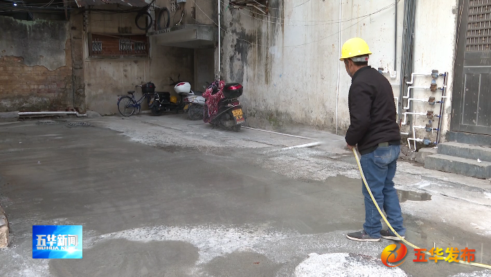 老旧小区改造既是民生工程、幸福工程,也推动了文明城市创建。在水寨镇邮政宿舍,记者看到工人正拿着水管向地面洒水保养。施工负责人谢卫振表示:“污水管道基本完工,只剩沥青和网线进行整改,墙面进行喷砂,基本上完成了百分之六十以上。”