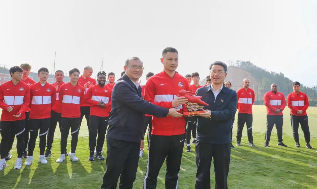 朱少辉、丘炀对当前推进足球改革发展、积极探索具有梅州特色的足球发展模式所取得的成绩表示肯定。他们强调,各级各相关部门要以创建全国足球发展重点城市为契机,持续推进五华足球事业建设取得新进展、新成效。要坚持党建引领,抓牢发展机遇,充分整合内部资源,突出重点,合力共建,加强统筹,发挥各自优势,实现互促共赢,引导树立正确的奖牌观,持续擦亮“足球之乡”特色品牌,努力打造梅州特色足球发展样板;要加强组织建设,突出人才培养,持续抓好青少年培训,注重球员的全面发展,挖掘足球“新苗子”,持续壮大足球人才队伍,锻造有竞争力的一流强队,以高质量的发展模式办百姓满意的足球;要完善相关足球球迷协会,加强球迷与俱乐部的沟通,充分发挥足球桥梁纽带作用,推动足球运动健康发展;要重视支持足球俱乐部的建设发展,加大政策扶持和资金投入,积极争取上级支持,优化五华县足球生态,打响“足球之乡”品牌,引导企业家、社会各界有识之士投资足球事业,为发展职业足球提供资金支持。同时勉励球员们不忘初心、刻苦训练、奋勇拼搏,努力做更好的自己,力争在各项赛事中赛出水平,取得优异成绩。