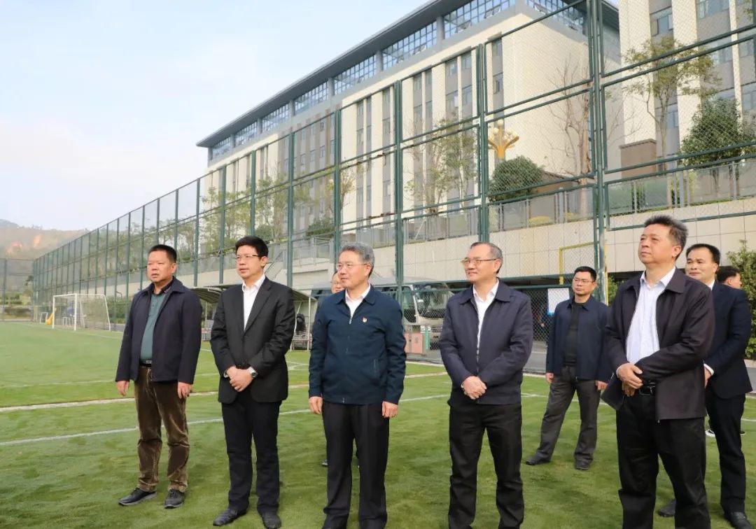 朱少辉、丘炀一行来到横陂足球小镇客家精英学校,先后看望了梅州客家精英梯队、梅州客家队,实地调研了解青少年足球和职业发展等情况。