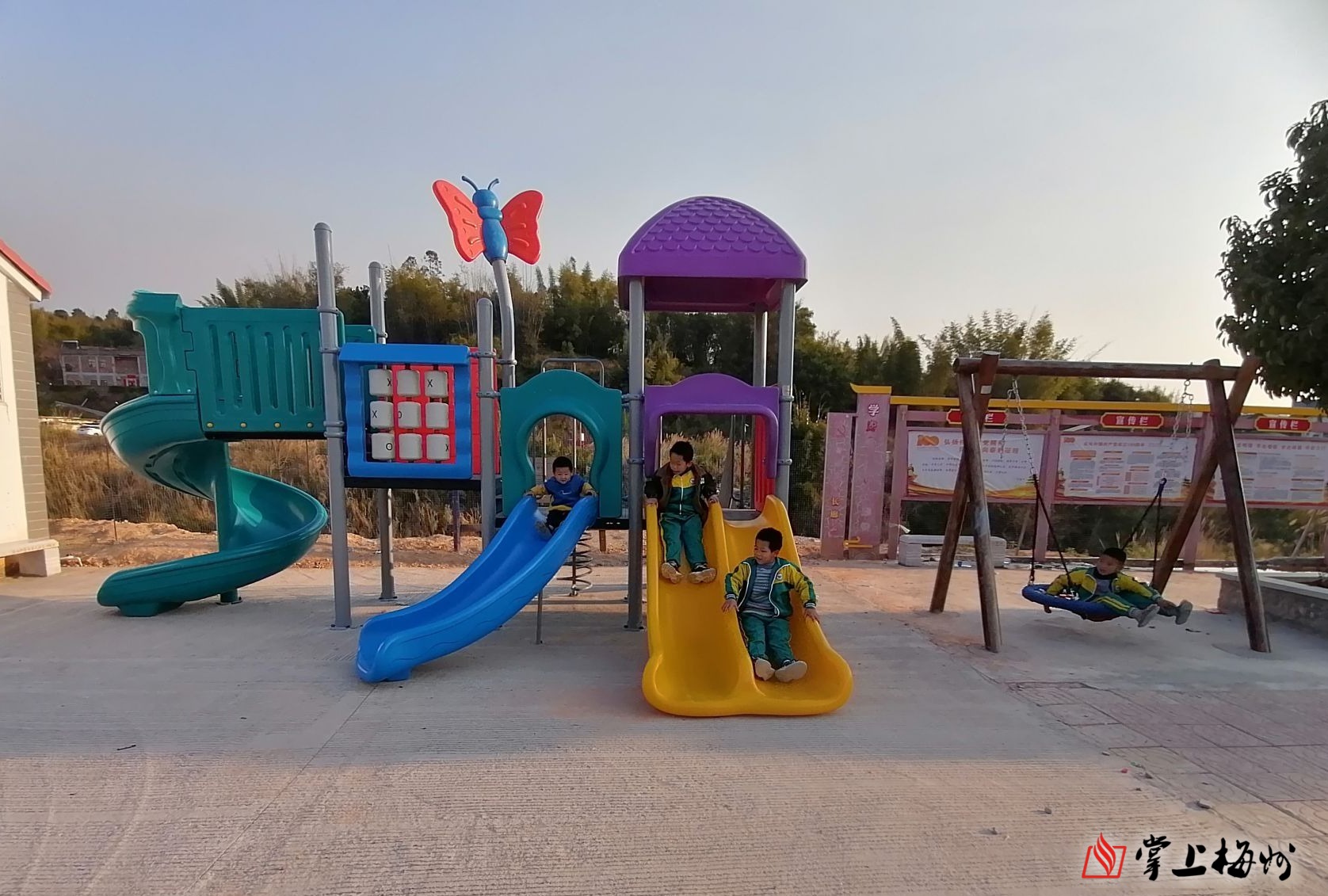 也是因为莫斯宁的引荐,才有了五华华新村“梦想游乐园”的落地。莫斯宁表示,即便现在已经离开梅州,但她对梅州依旧有着牵挂,刚好有机会可以延续穗梅情谊,希望这片土地越来越好。“我们村有6000多人口,由于多数青年外出打工,留守儿童、空巢老人较多,小乐园的落地,让孩子们体育锻炼游玩有了好去处,丰富了孩子们的游乐场地。”五华华新村党支部书记古世权说。