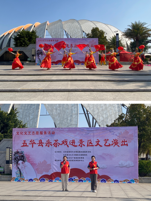 《吉祥如意》《一起向未来》《客家迎客来》《走进新农村》《歌唱祖国》等歌曲在奥体中心精彩演绎,学雷锋纪念日当天,五华县采茶戏传承保护中心志愿服务队在奥体中心开展了文艺演出志愿服务活动,现场还有具有五华非遗采茶戏特色的相声《吃在五华,游在五华》,笛子独奏《刘老根大舞台》《扬鞭催马运粮忙》等节目,为人民群众送去丰富的精神食粮,享受文化惠民带来的美好生活,走基层、学雷锋,真正让文艺志愿服务在基层活跃起来。