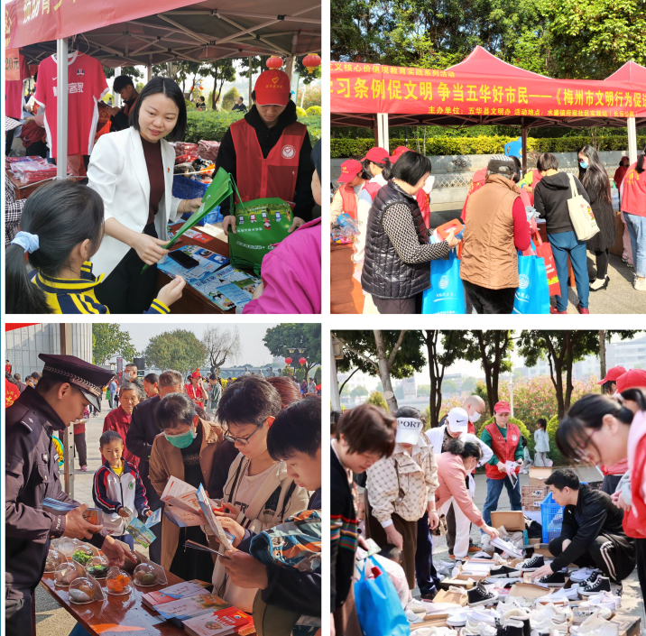 启动仪式后,长乐公园作为主会场,现场开展了义诊、义剪、义卖、安全知识宣传、公益点心品尝等一系列便民志愿服务活动。县文明办、团县委、县公安局、县消防救援大队、县公安局交警大队、县税务局、县教育局、县科协、县市政公用事业服务中心等10多个单位参与各类政策、知识宣传和科技展示等活动,县志愿者联合会组织了“爱心公益淘”、梅州客家球迷会、梅州谷城医院、宁华公司、汕湛分公司、五华农商行、“听·见”、“无限美”、县青年志愿突击队、皇樽等志愿服务组织(团体)现场开展各类志愿服务活动,现场热闹非凡,群众赞不绝口。