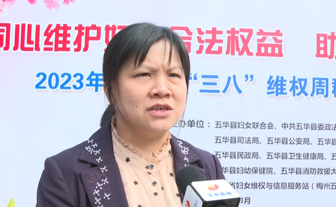 【五华县妇联副主席 李晓婷:此次活动我们采用通俗易懂的方式,将法律知识和维权关爱服务送到妇女群众的身边,进一步增强妇女的获得感和幸福感,强化她们的法治意识和依法维权的能力。】