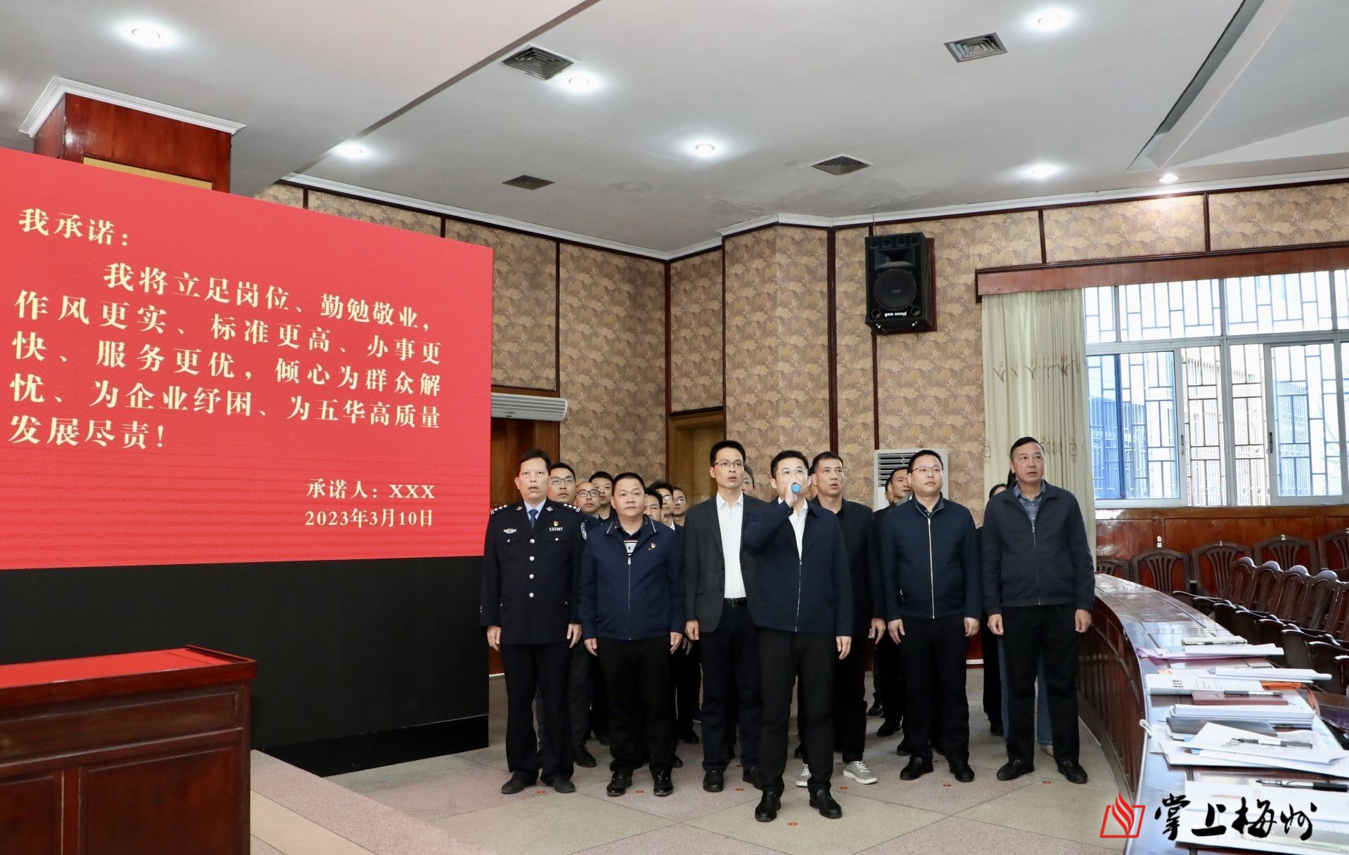 会上,五华县委常委、县委办主任温定基对《中共五华县委关于加强作风建设的实施方案》作说明;副县长邝逸平对五华招商优势、目标任务、政策解读进行宣讲;驻珠海招商队、发改局、政数局、水寨镇、自然资源局等单位作表态发言;相关单位有关负责人进行了集体承诺。