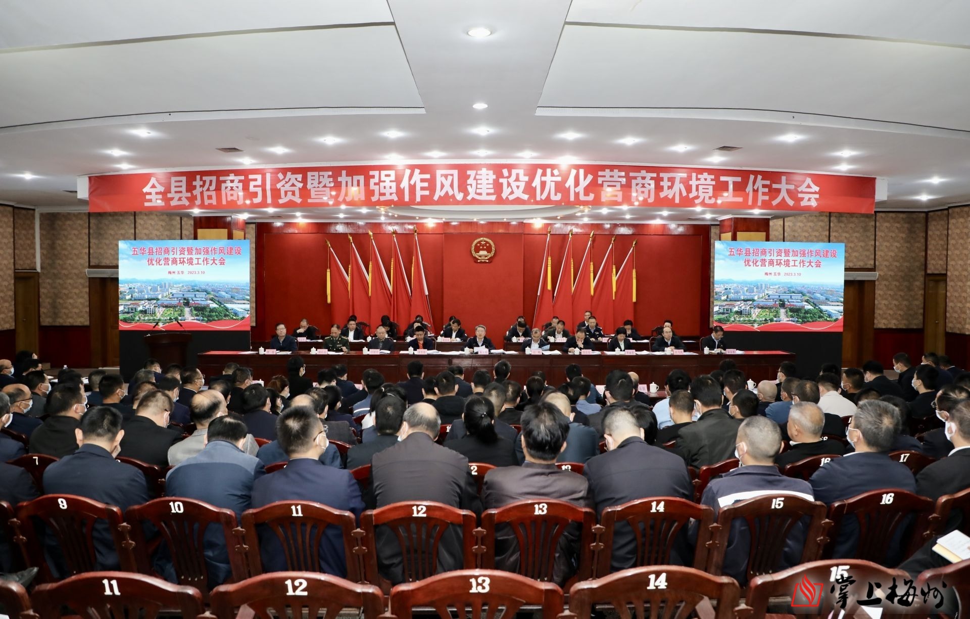 掌上梅州讯 3月10日上午,五华县招商引资暨加强作风建设优化营商环境工作大会在县党政大楼大会堂召开。会议动员全县上下全面落实招商引资“一把手”工程,进一步聚合力、转作风、优环境、增动能,推动招商引资打开新局面、取得新成效,为五华高质量发展积蓄新的动能。