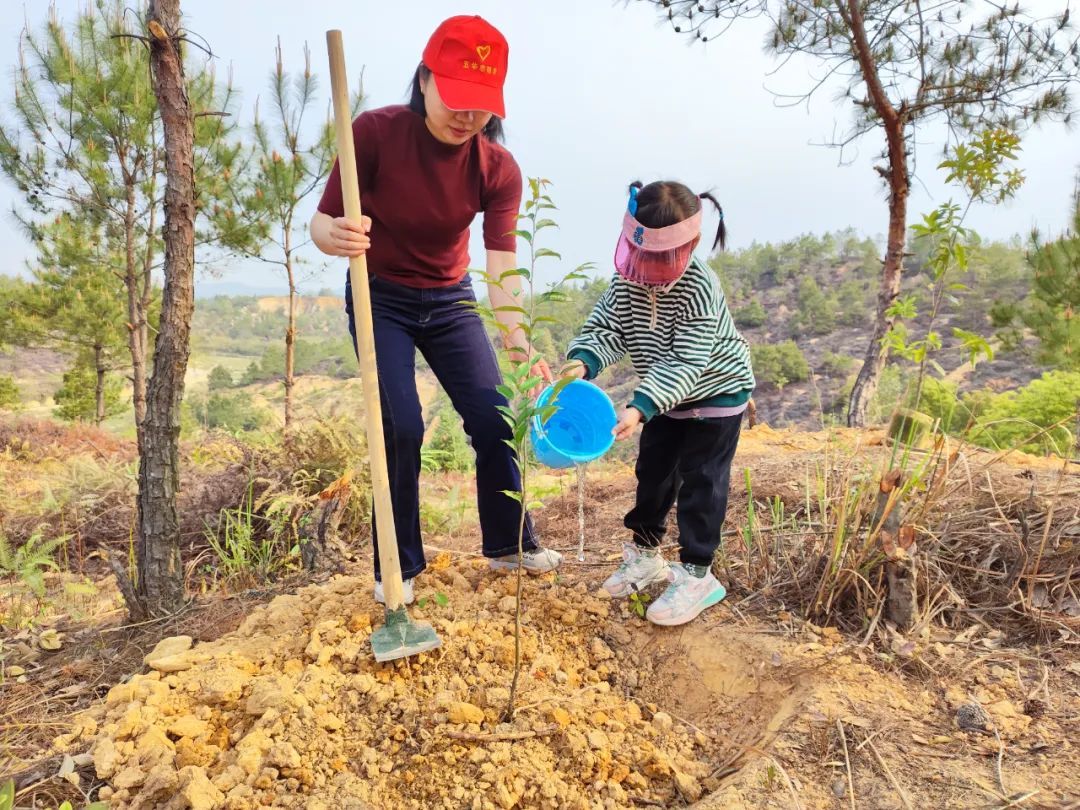 随后,记者看到,各单位党员志愿者率先垂范,与现场志愿者、亲子家庭一起,他们手拿锄头、铁锹、水桶等工具,带着树苗,大家热情高涨,填土浇水、互相协作,特别是现场的100多对亲子家庭,他们带着小朋友用自己的双手栽下一株株充满希望的树苗,扮靓了这片山地,增添了一道绿色、靓丽的风情线。随后,在不到一上午的时间里,经过连续劳作,一排排整齐的苗木迎风挺立,为春日增添了绿色活力,焕发出无限生机。