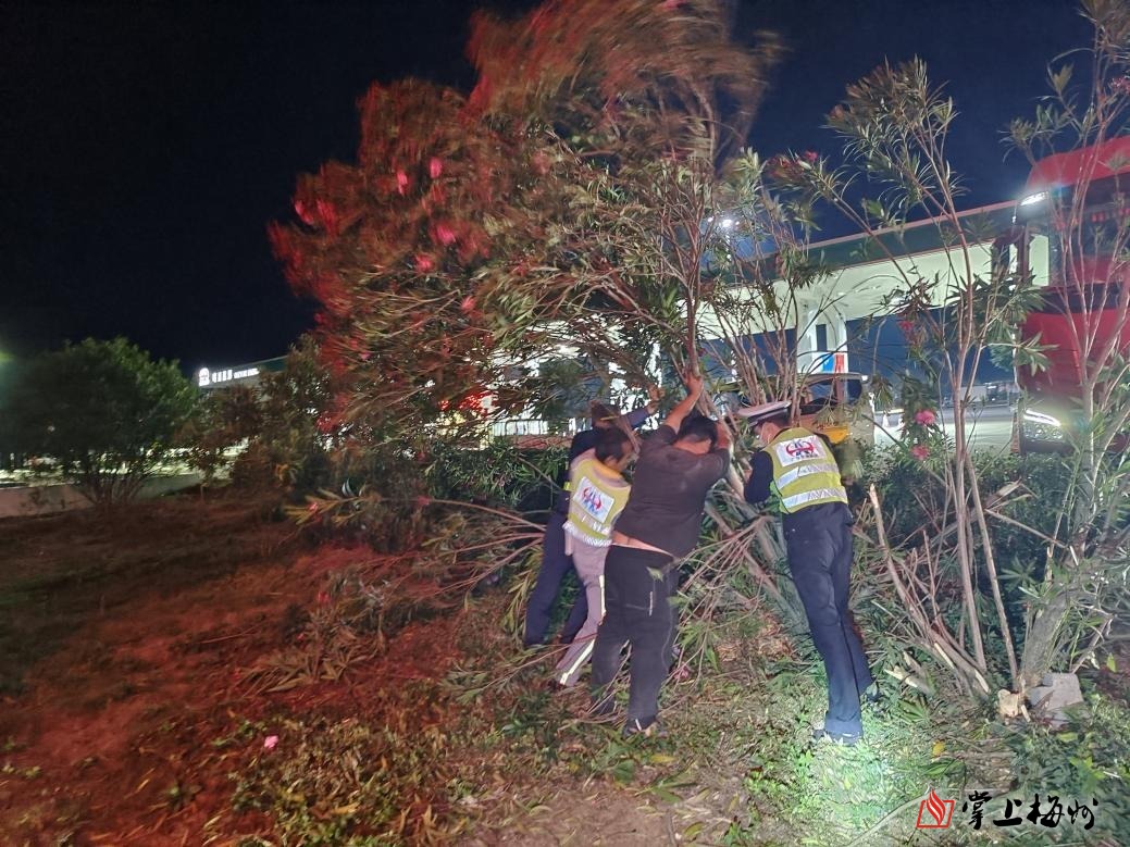 掌上梅州讯 “伴随着一声轰隆,几棵碗口粗的树木被折断了。”横陂服务区协管员肖易星回忆起3月15日晚上兴华高速横陂服务区发生的惊险一幕仍心有余悸。