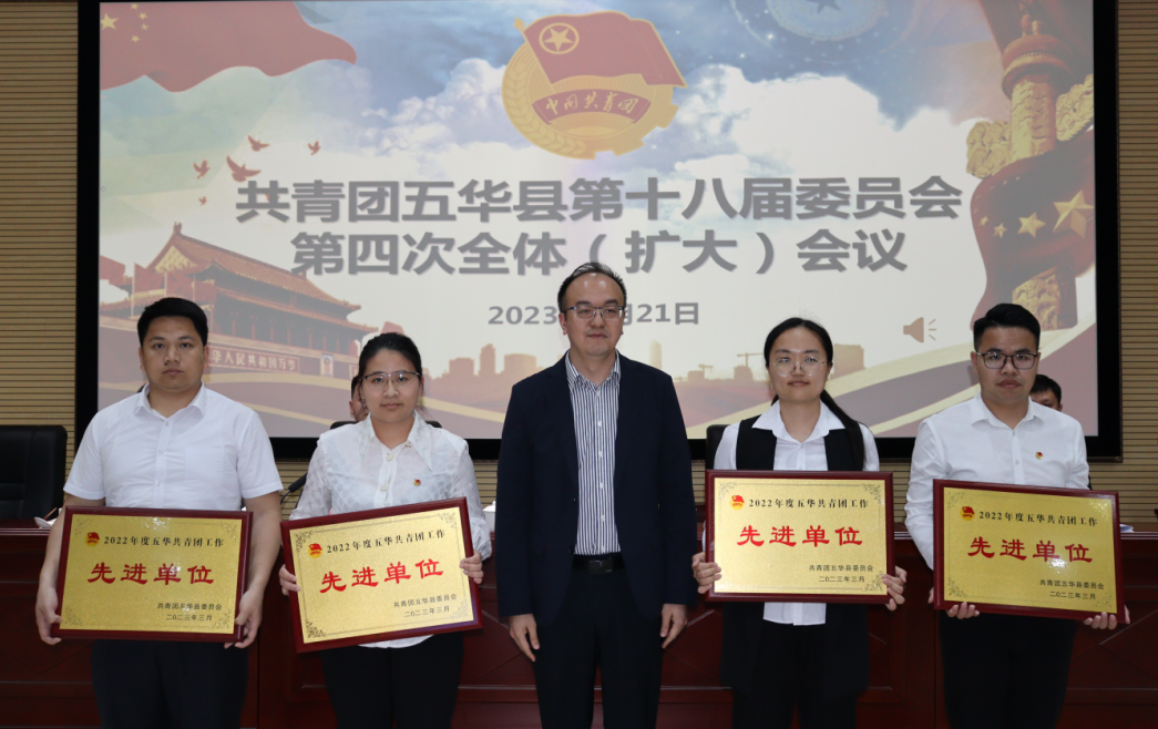 共青团五华县第十八届委员会第四次全体(扩大)会议于3月21日召开。会议深入学习贯彻党的二十大精神及习近平新时代中国特色社会主义思想,深入贯彻习近平总书记关于青年工作的重要思想,认真落实团中央、团省委、团市委全会和县委全会等有关部署要求,总结五华共青团2022年工作情况,研究部署2023年重点工作。会议对2022年度五华共青团工作先进单位进行表彰,审议通过了《五华共青团2023年工作要点(草案)》等文件。五华县委常委、组织部长罗瑞金出席会议并讲话,团县委书记李怡凤主持会议并向大会作工作报告。