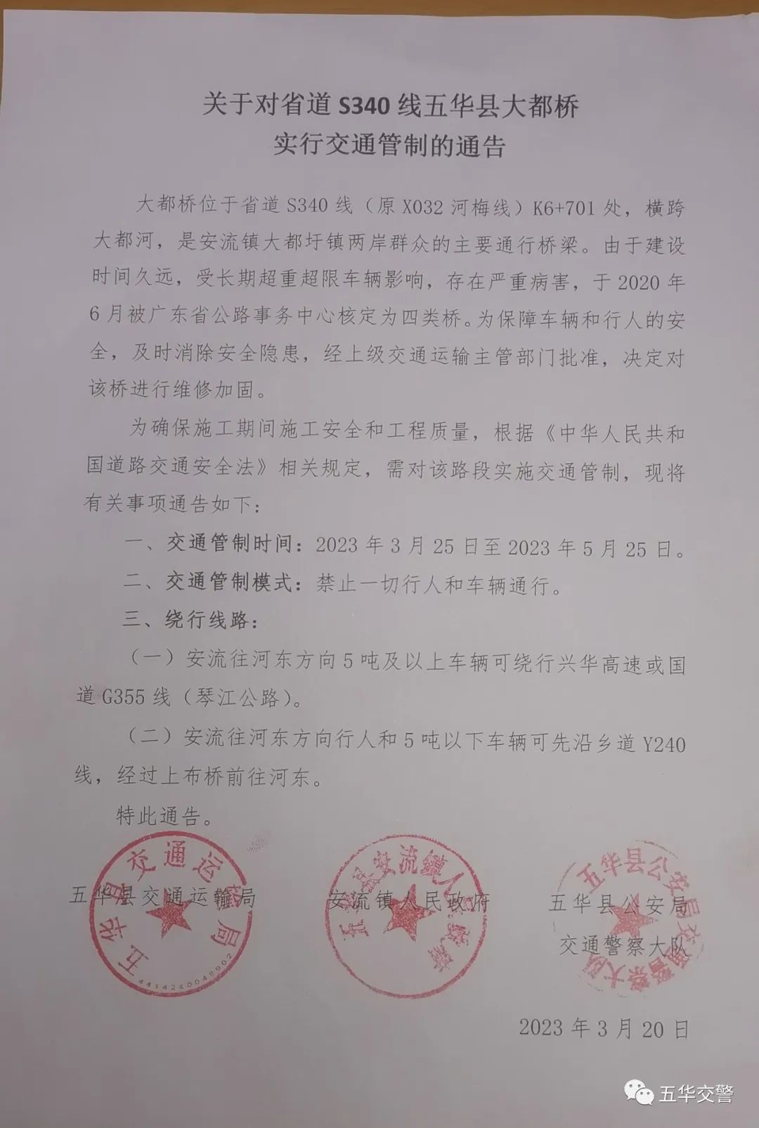 一、交通管制时间:2023年3月25日至2023年5月25日。