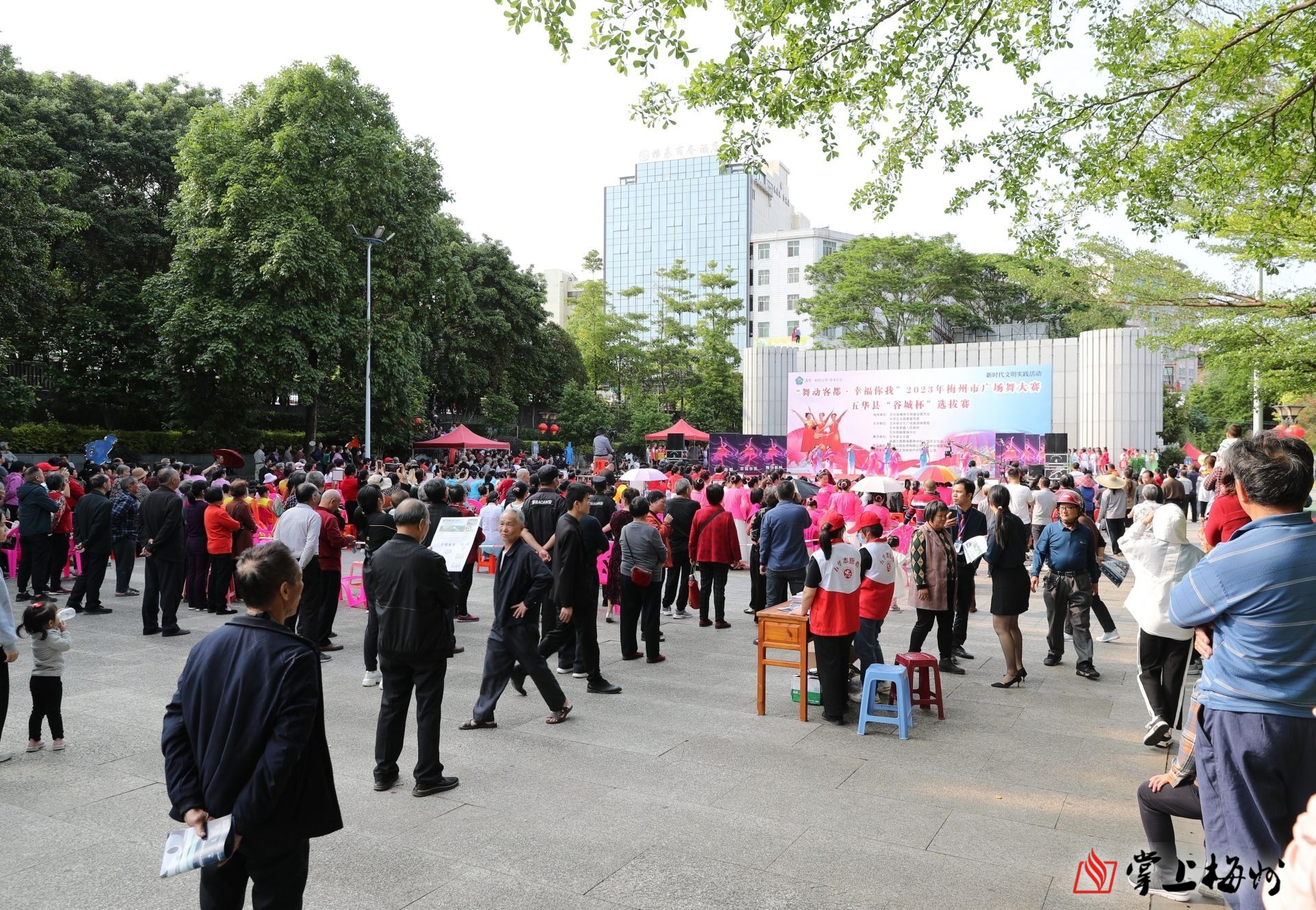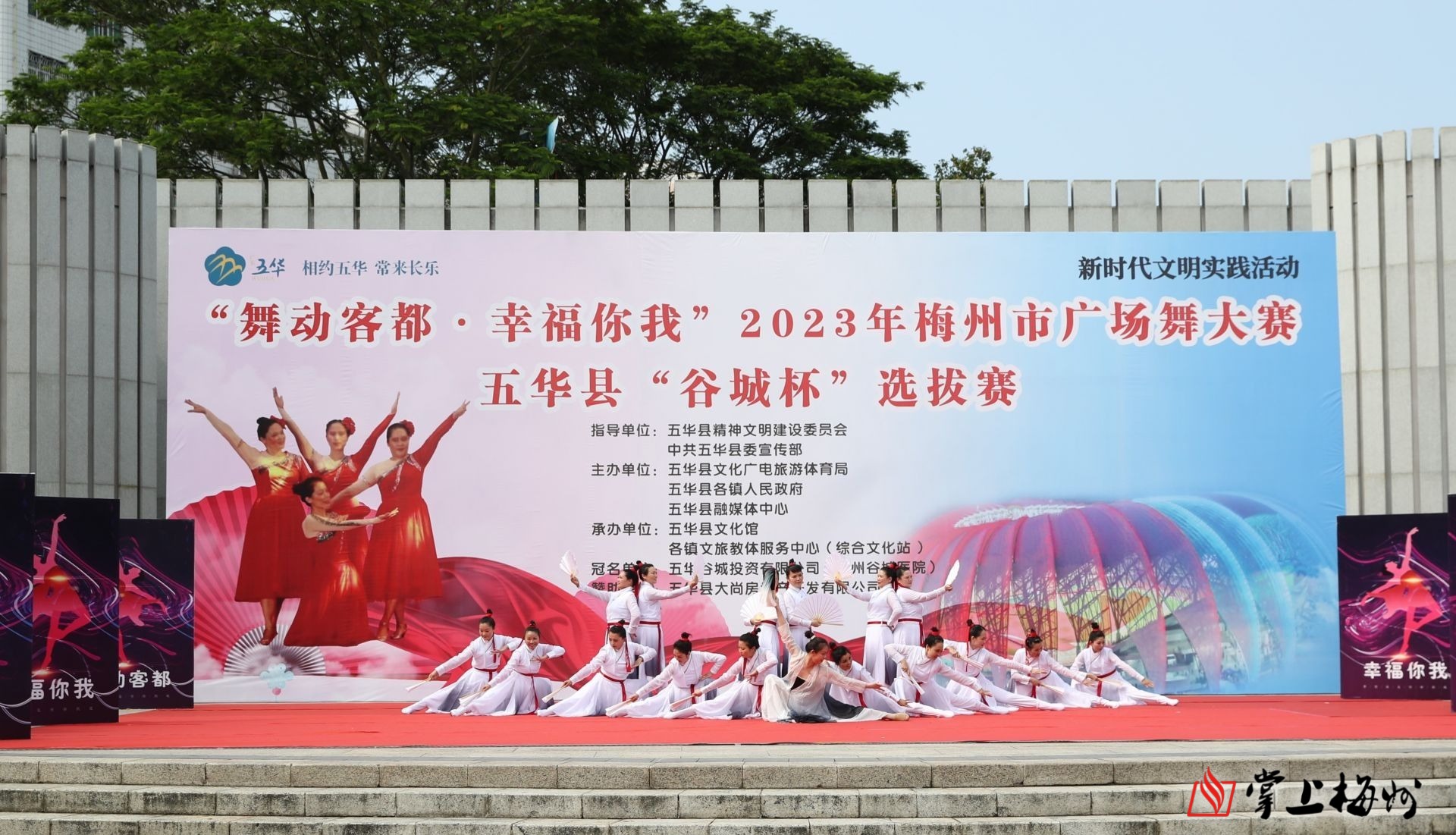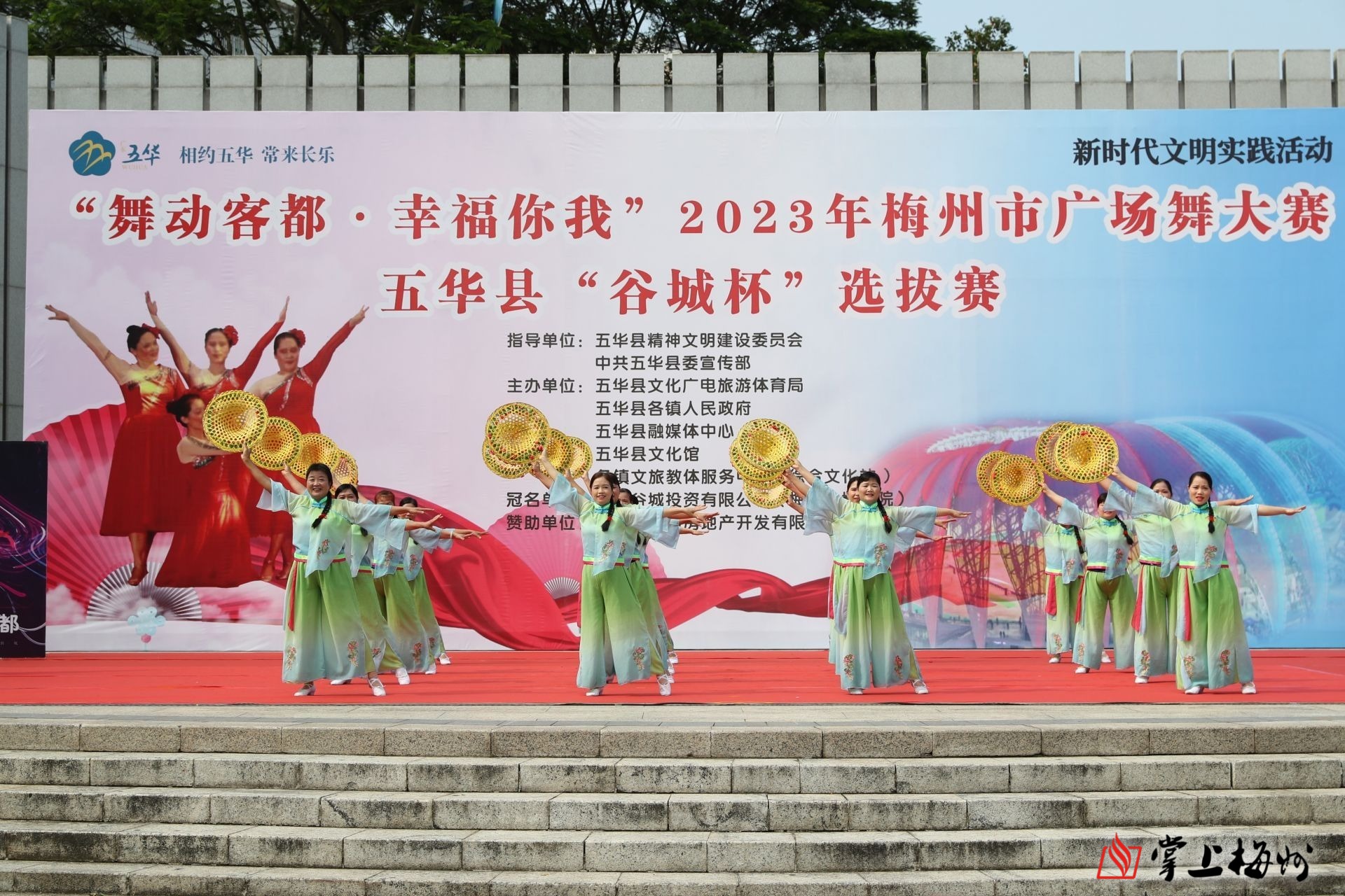掌上梅州讯 4月7日下午,“舞动客都·幸福你我”2023年梅州市广场舞大赛五华县“谷城杯”选拔赛在该县长乐公园书卷舞台举行,大赛还通过网络进行全程同步直播。来自全县16个乡镇的16支参赛代表队经过激烈的角逐,最终评选出一等奖1名,二等奖2名,三等奖3名,优秀奖10名,并评出优秀组织奖3名。市委常委、宣传部部长张运全,五华县委书记朱少辉等参加活动。
