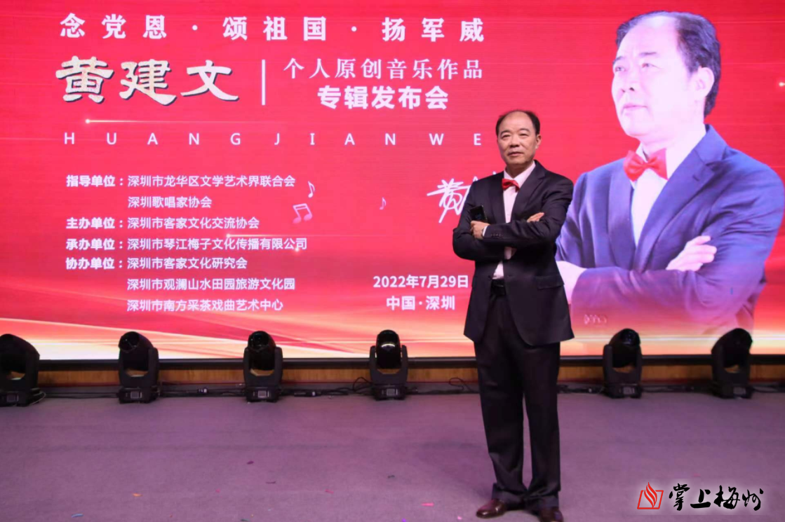 黄建文祖籍梅州五华,今年67岁。2016年从深圳出入境边防检查总站退休后,他开始探索填词作曲,开启了自己的歌曲创作之旅。至目前,他填词作曲的歌曲作品累计有二十余首,传唱流行较广的有《来了就是深圳人》《中国人民唱起来》《我曾当过兵》《爱你啊客家》《采茶情歌新唱》等,收录于《黄建文原创作品专辑》中。
