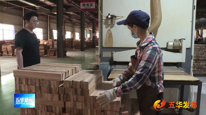 在五华匠王红木生产车间,公司负责人李顺正在生产车间查看红木制作情况。李顺告诉记者,大学毕业后他便回到了家乡,扎根五华红木事业。这些年来,他见证了公司从小到大的发展历程,企业由过去的横向扩张,转变为现阶段的专注纵深领域的深耕。