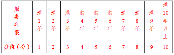 申请人在五华县的服务年限可以累计积分,在五华县签订劳动合同年限每满1年加1分,总分不超过10分。