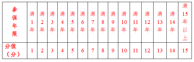 参加五华县城镇基本养老保险、城镇基本医疗保险、失业保险、工伤保险、生育保险,每个险种每满1年积1分,需提供社保经办机构或税务部门出具的证明。申请人参加社会保险的年限可以累计积分,总分不超过15分。