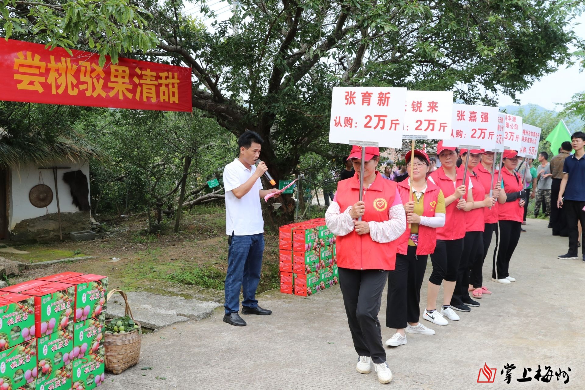 值得一提的是,为增强活动趣味性、提升采摘体验感,现场还开展举行了果王评选和竞拍活动。最终,“罗公岭最大桃驳果”被外出乡贤张天文以3000元高价竟得。“出3000元竞拍,主要是鼓励果农坚定信心,种出质量更佳的桃驳果,把这份产业发展得更好”。