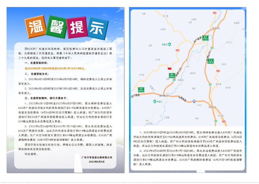 关于G35 济广高速梅林、安流收费站实施临时交通管制的通告